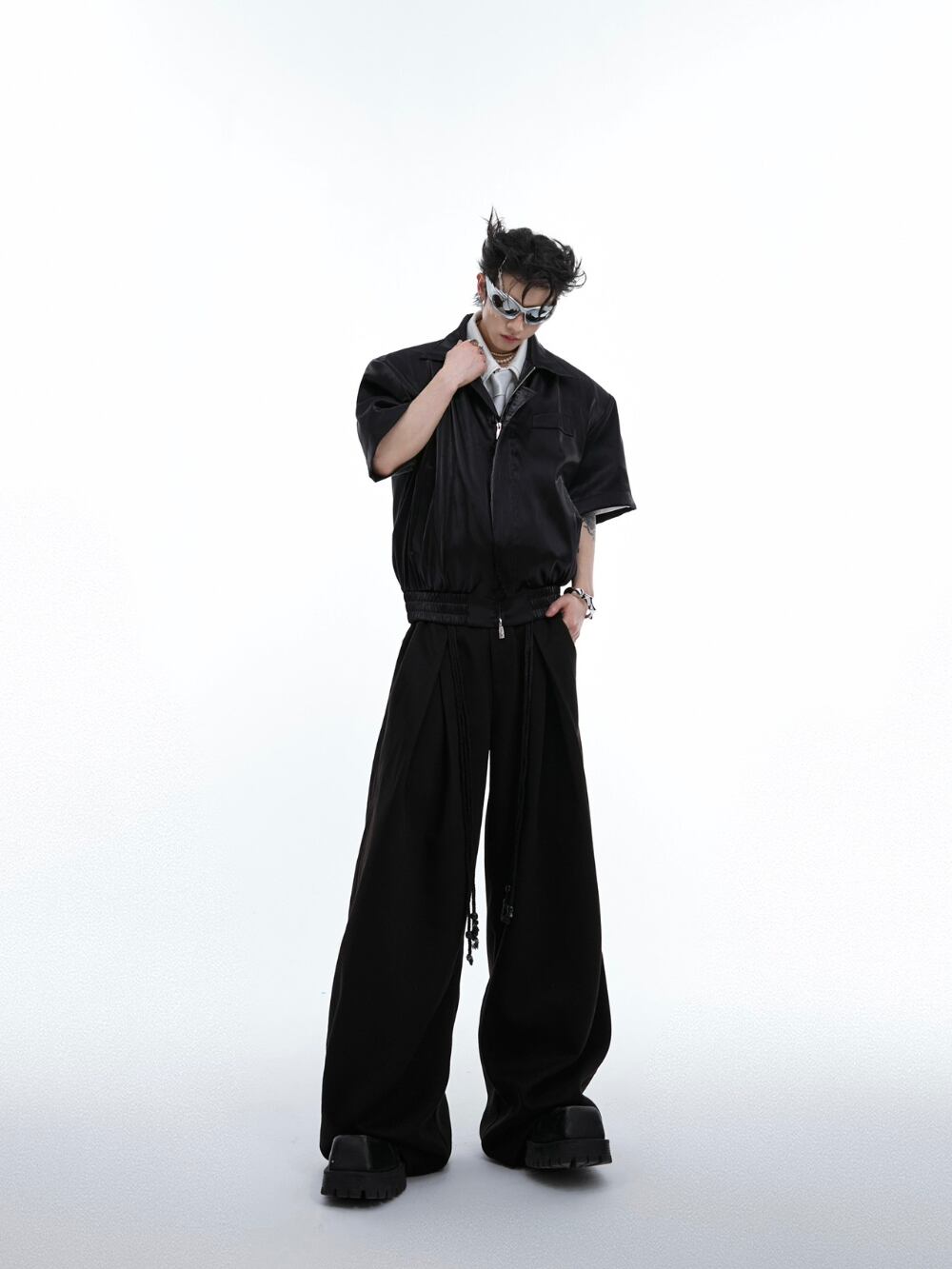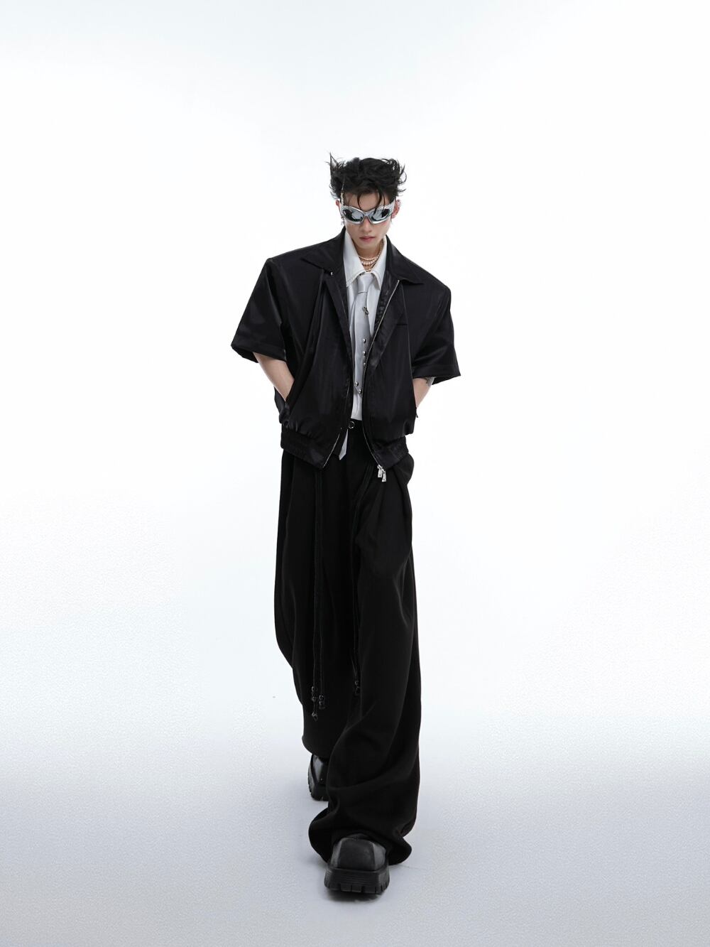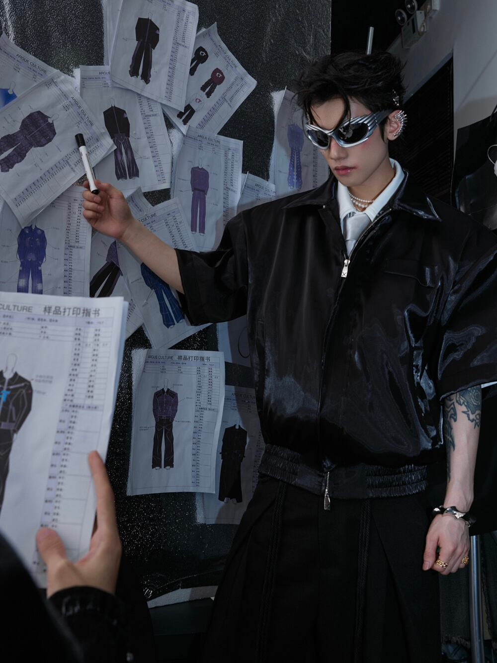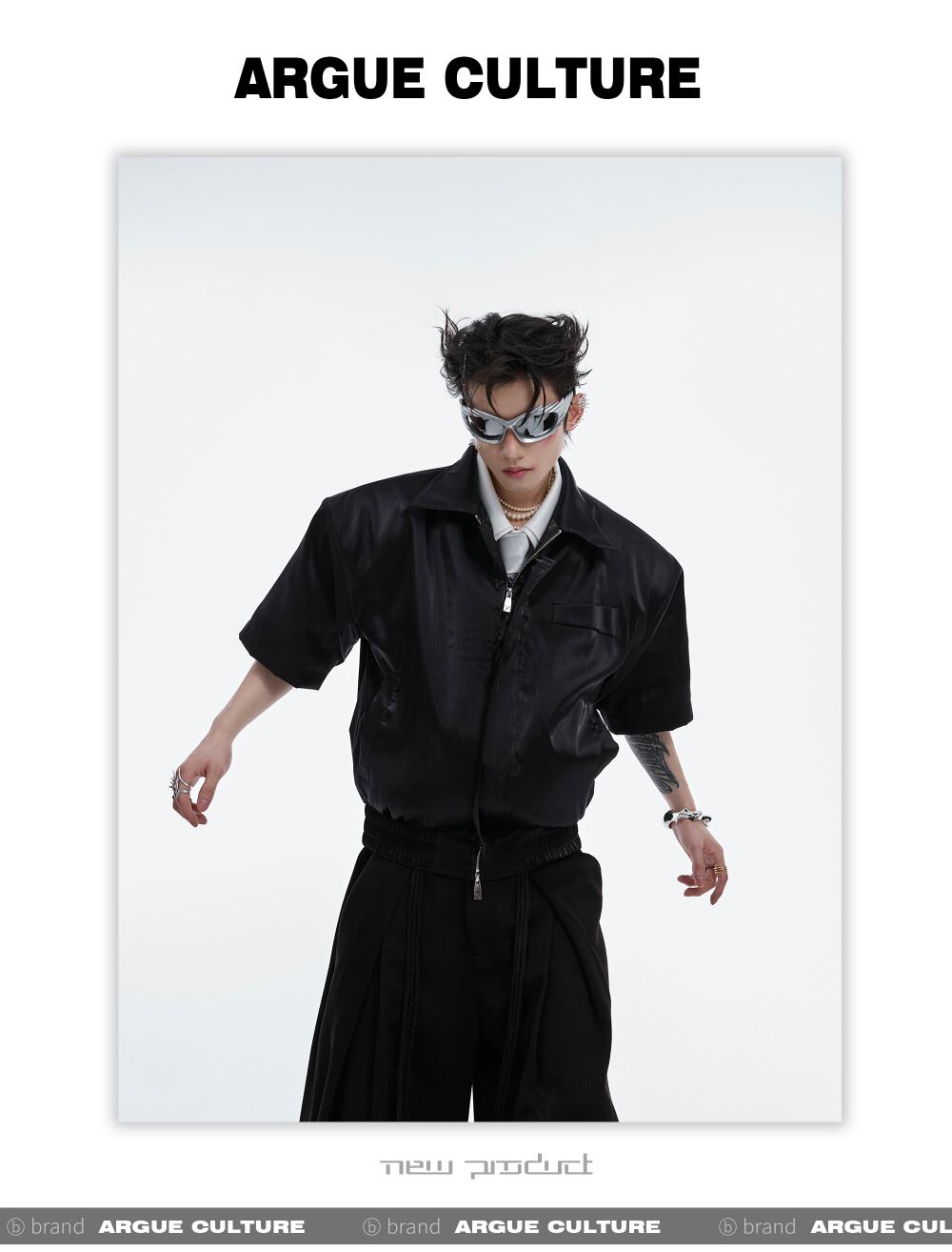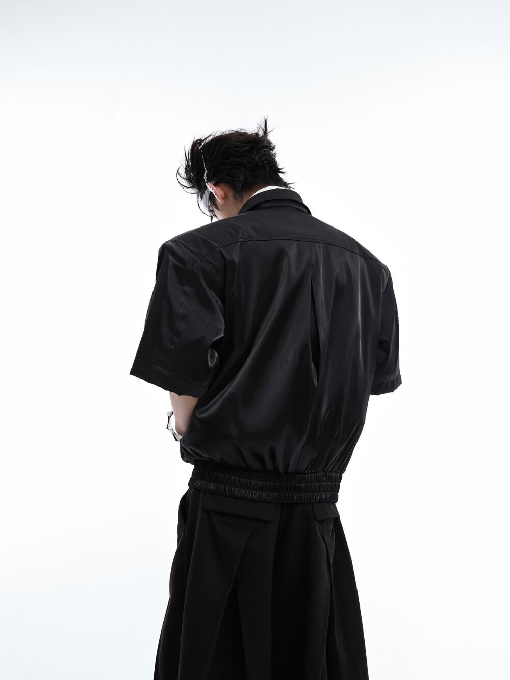 Argue Culture 半袖シャツジッパー光沢無地ショートゆったり男女