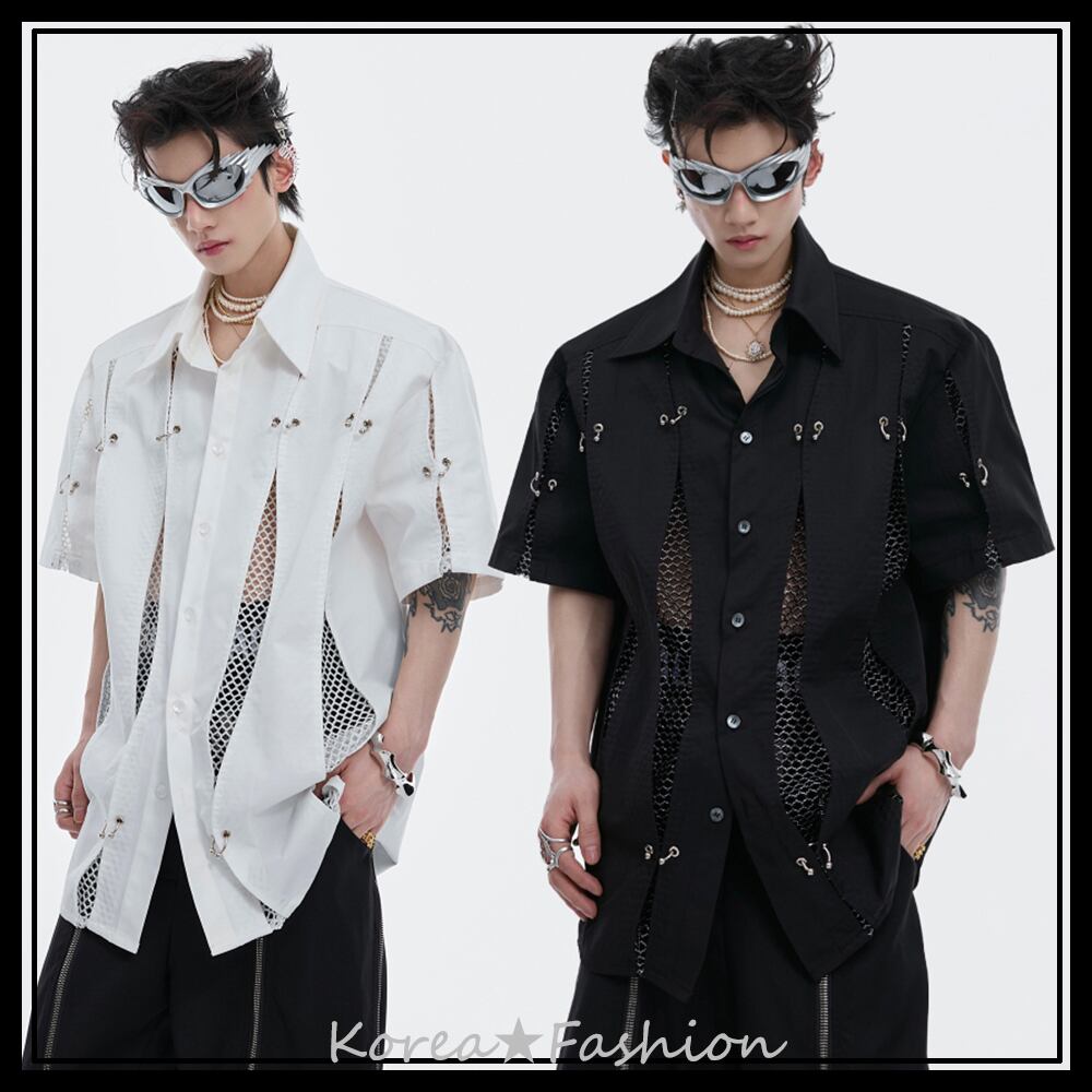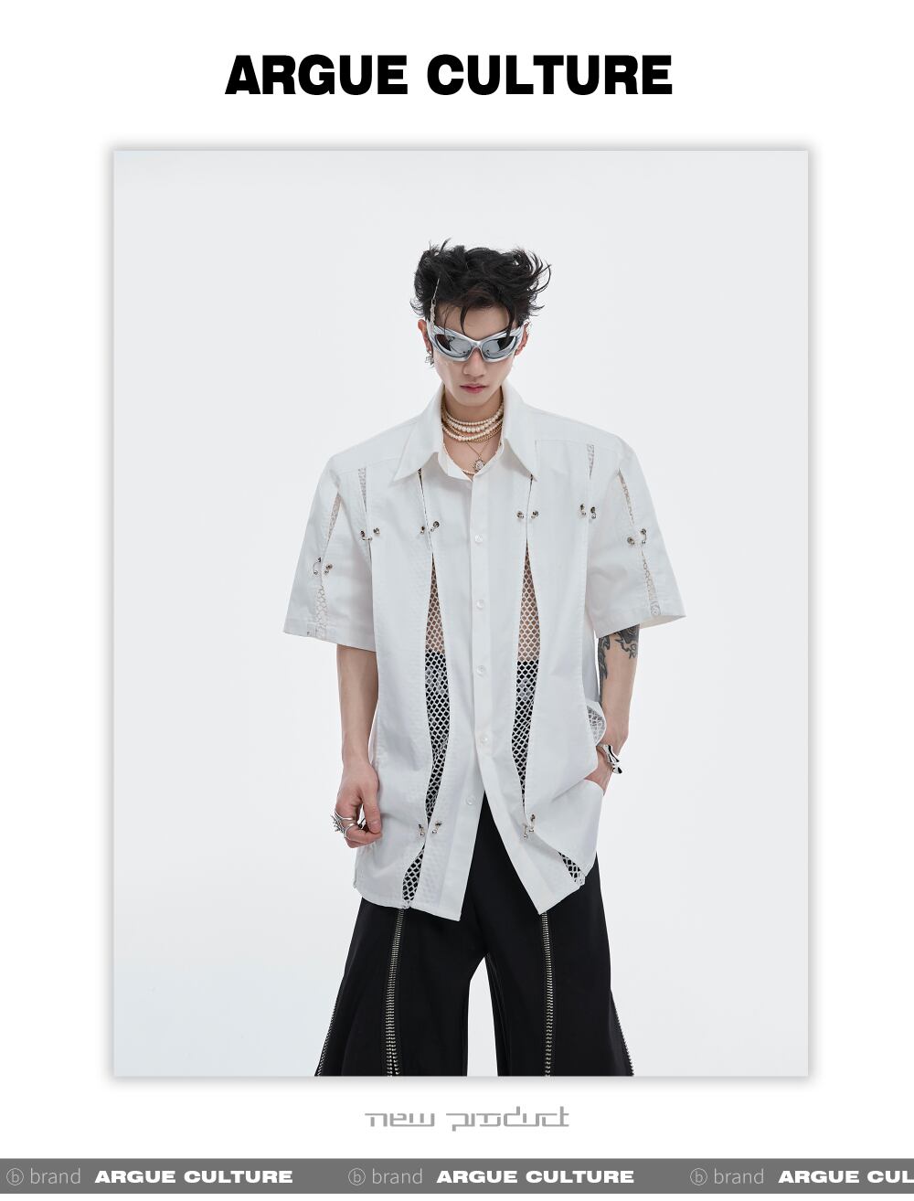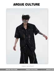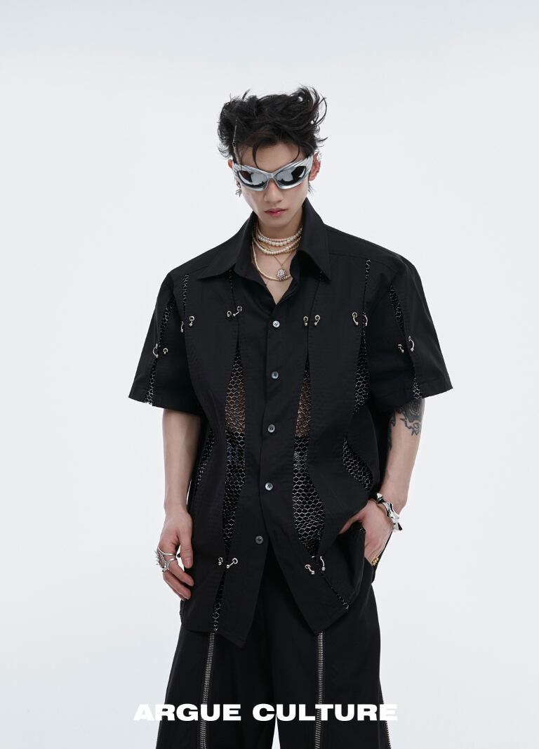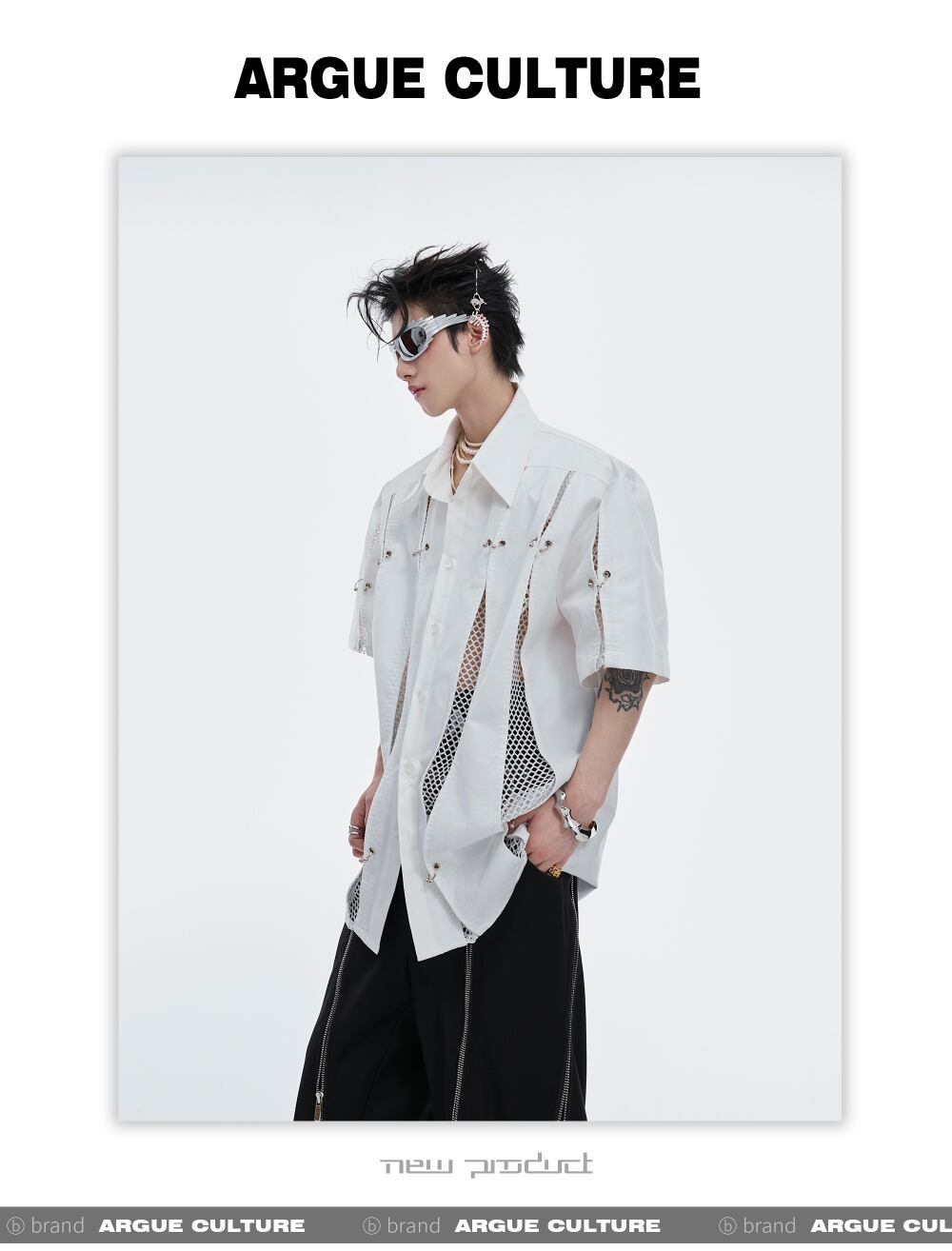 Argue Culture メッシュ切替シャツメタルデザインゆったり男女