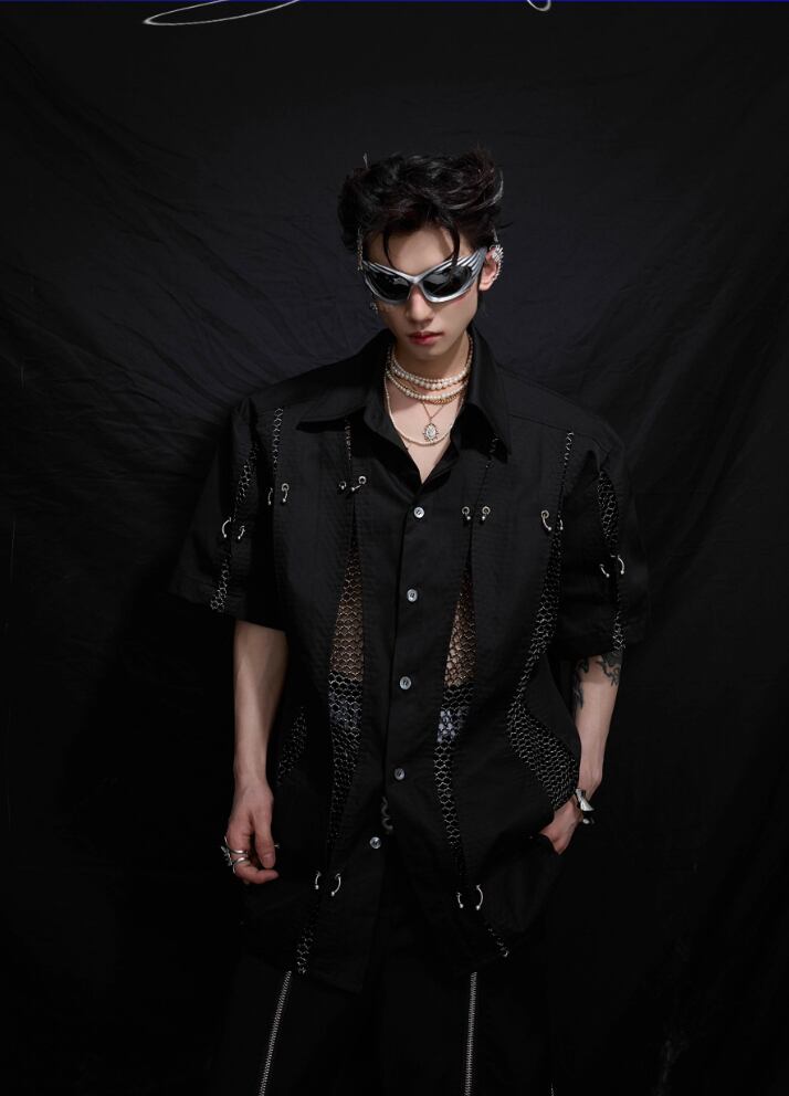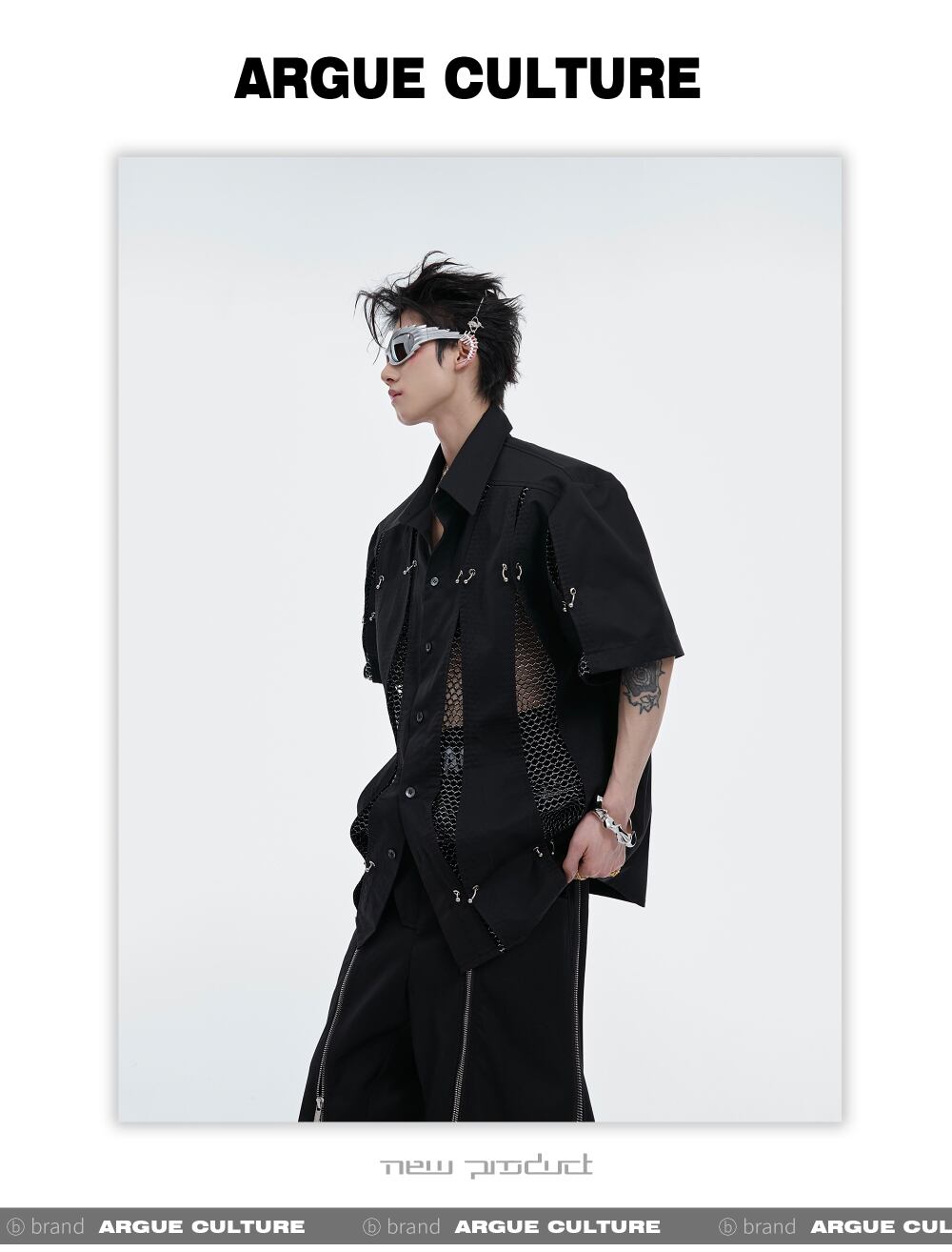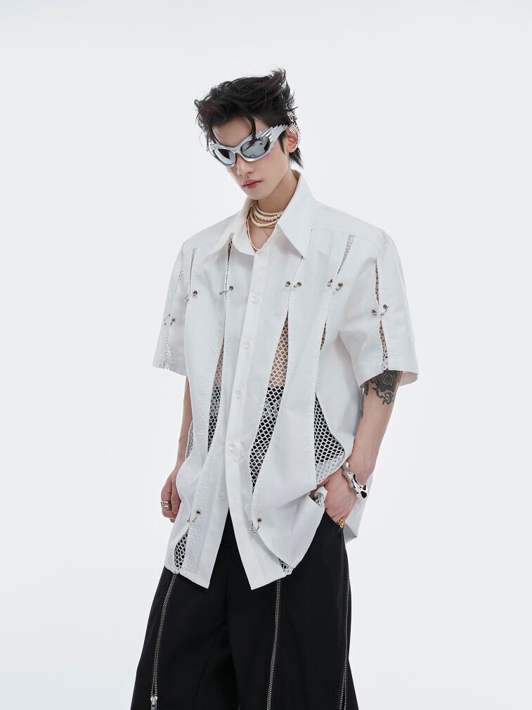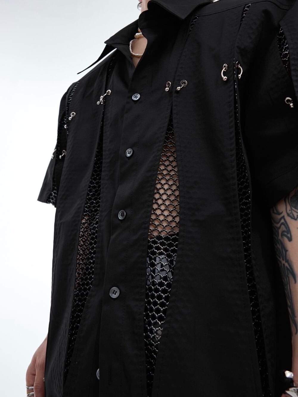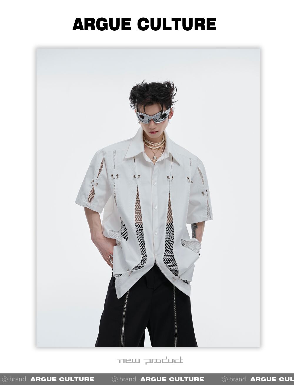 Argue Culture メッシュ切替シャツメタルデザインゆったり男女