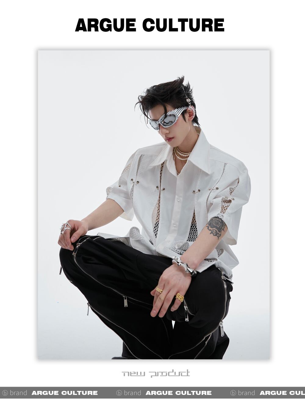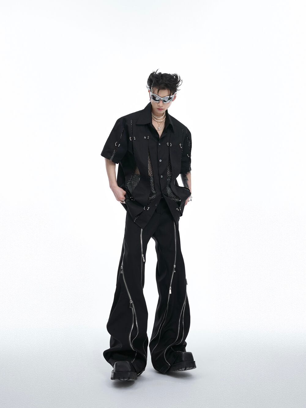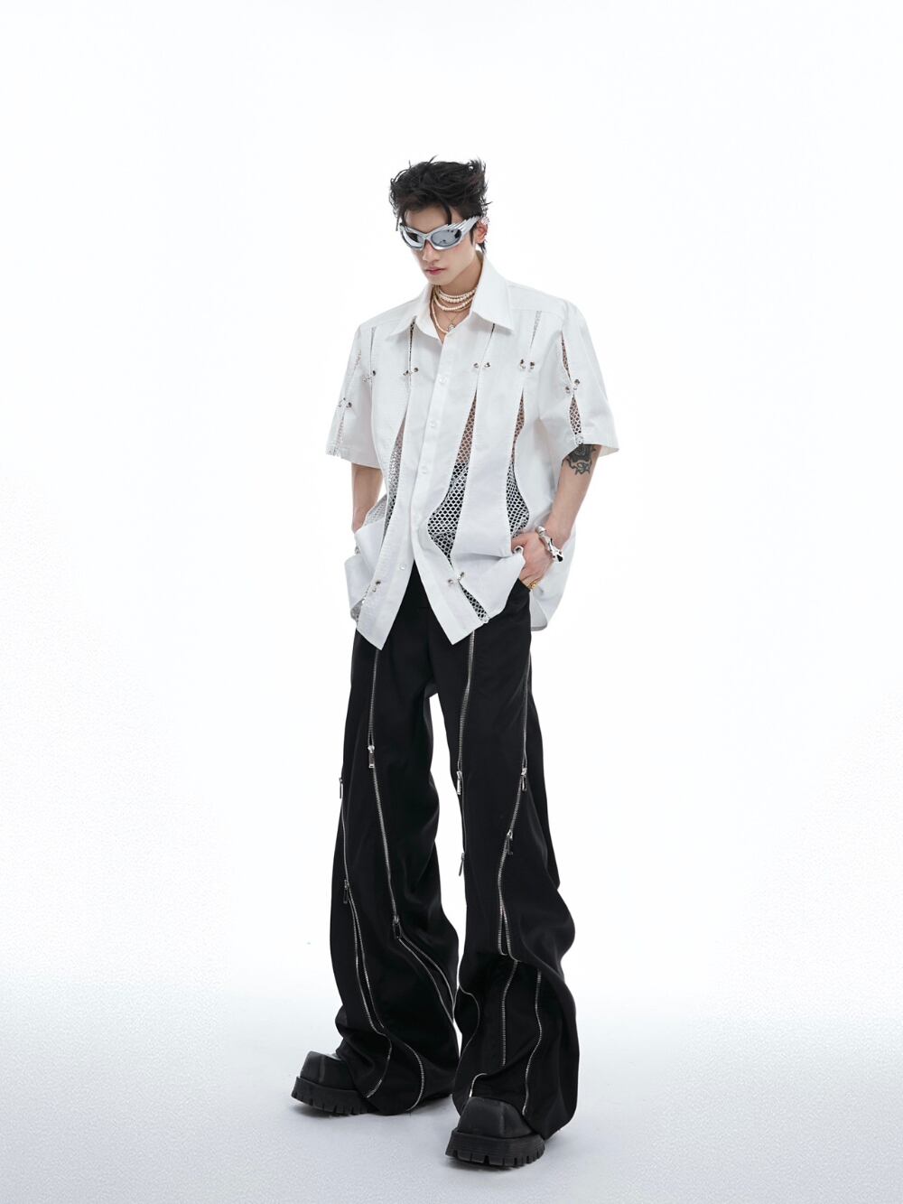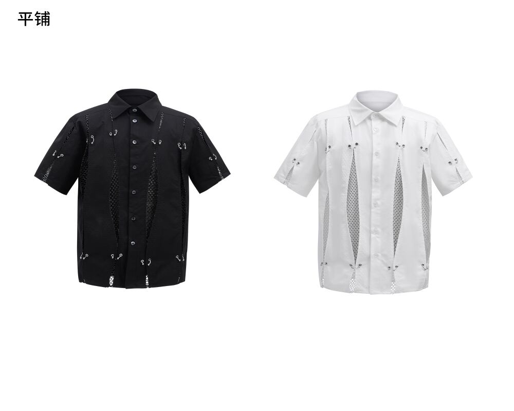 Argue Culture メッシュ切替シャツメタルデザインゆったり男女