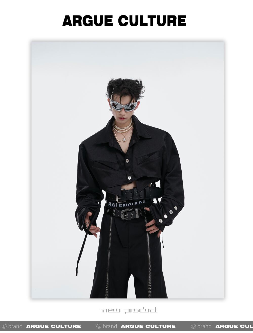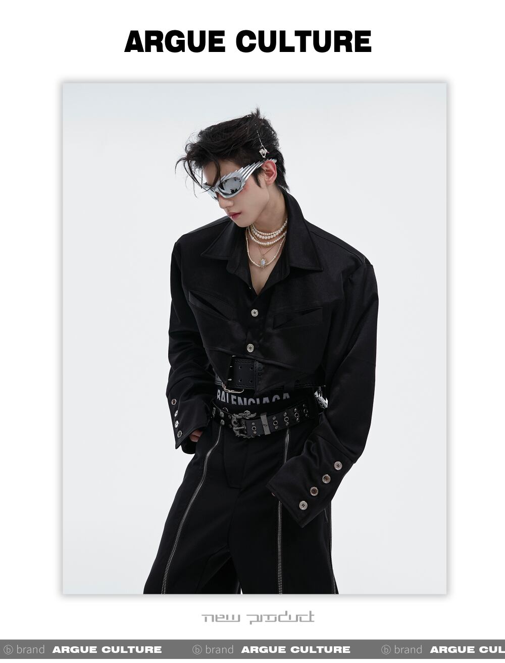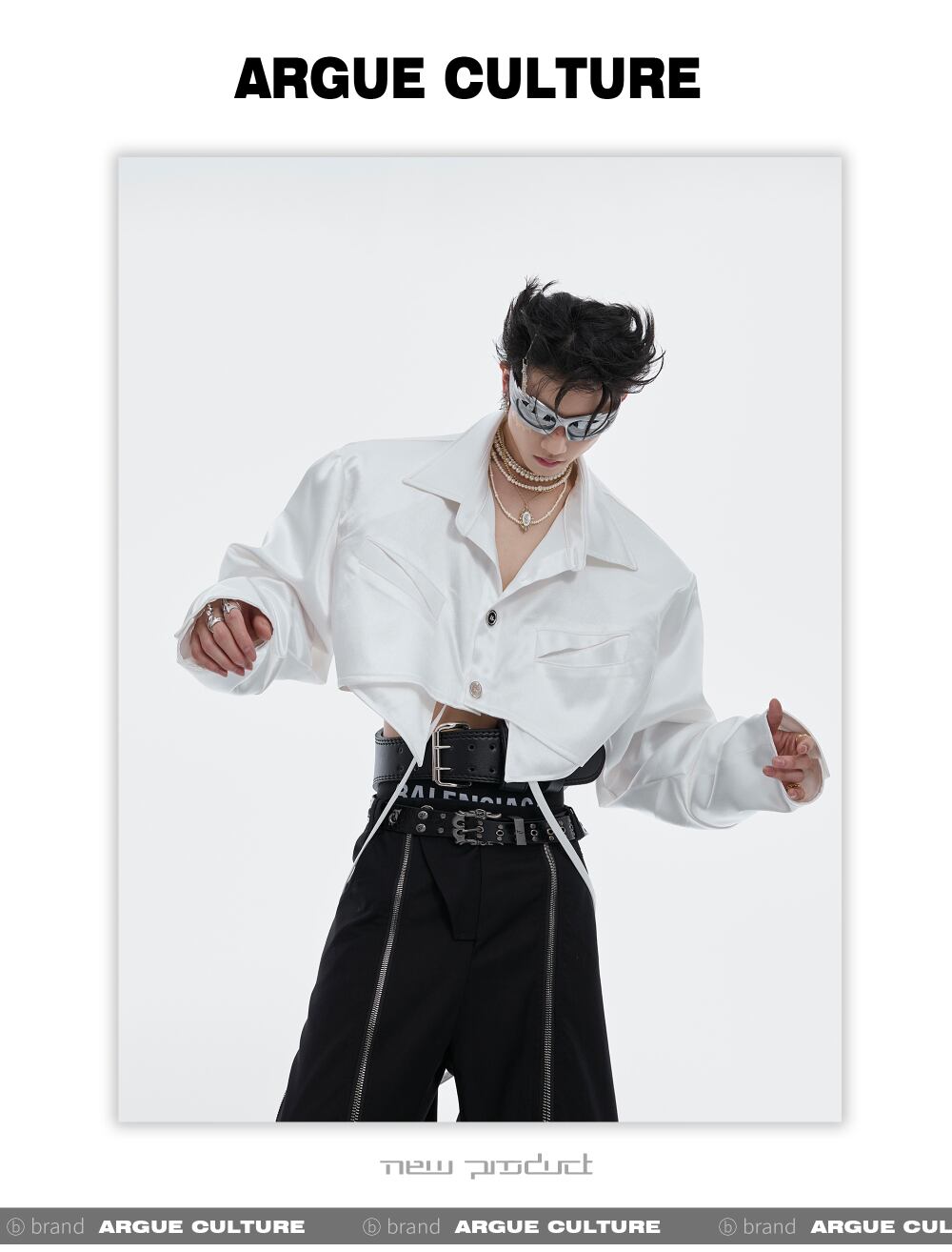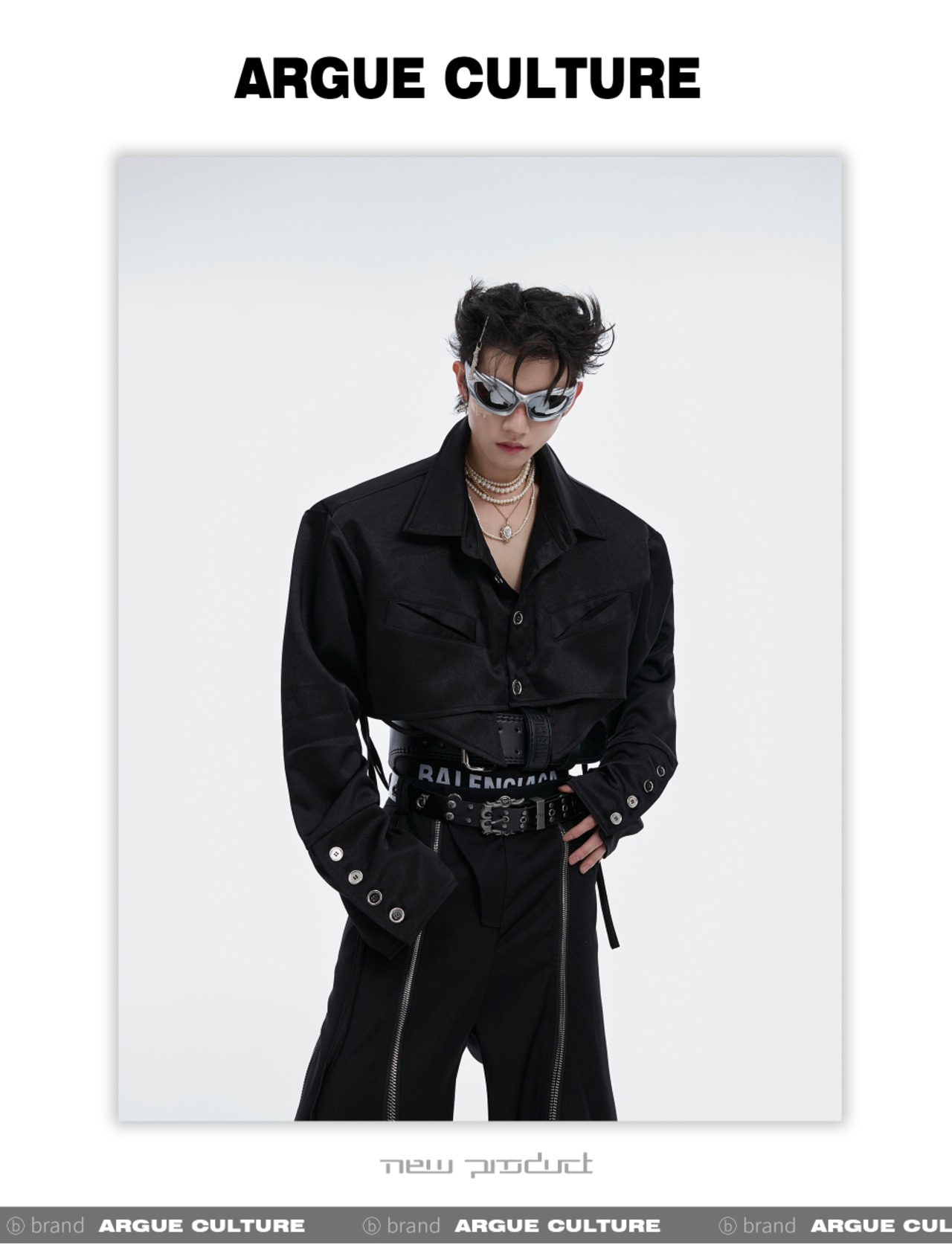 Argue Cultureショートシャツ長袖ゆったり無地薄手アウター男女