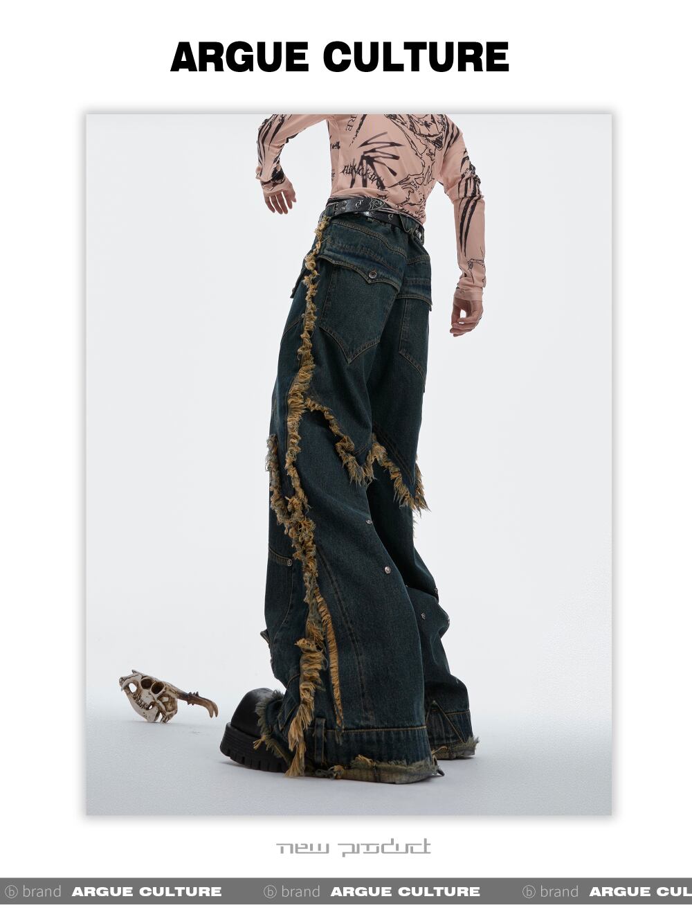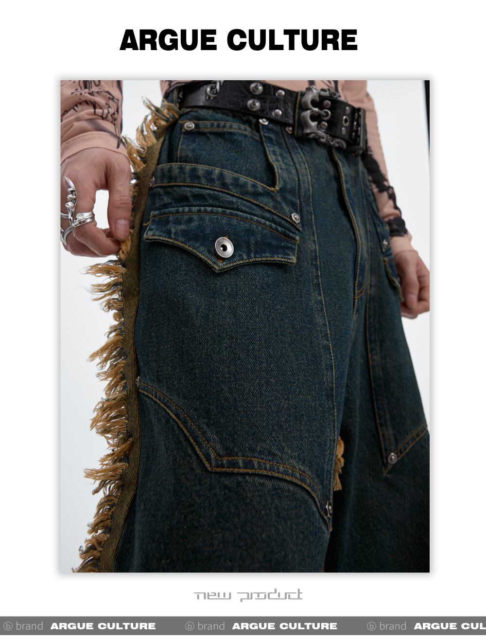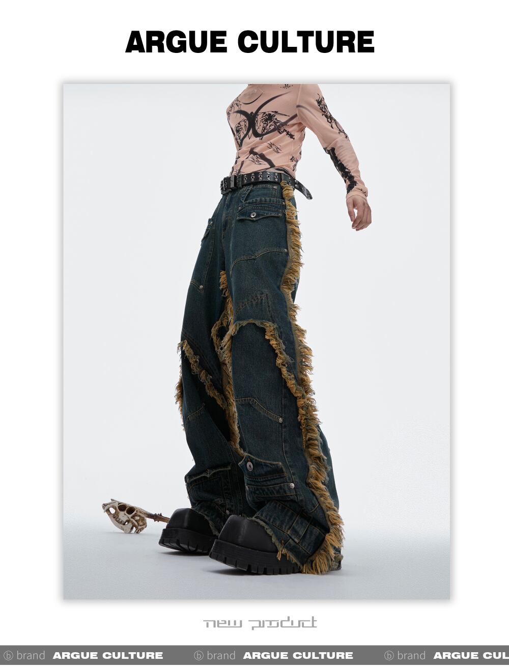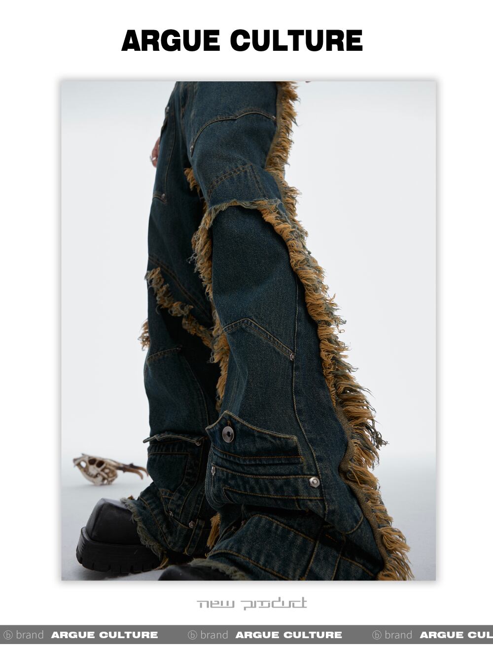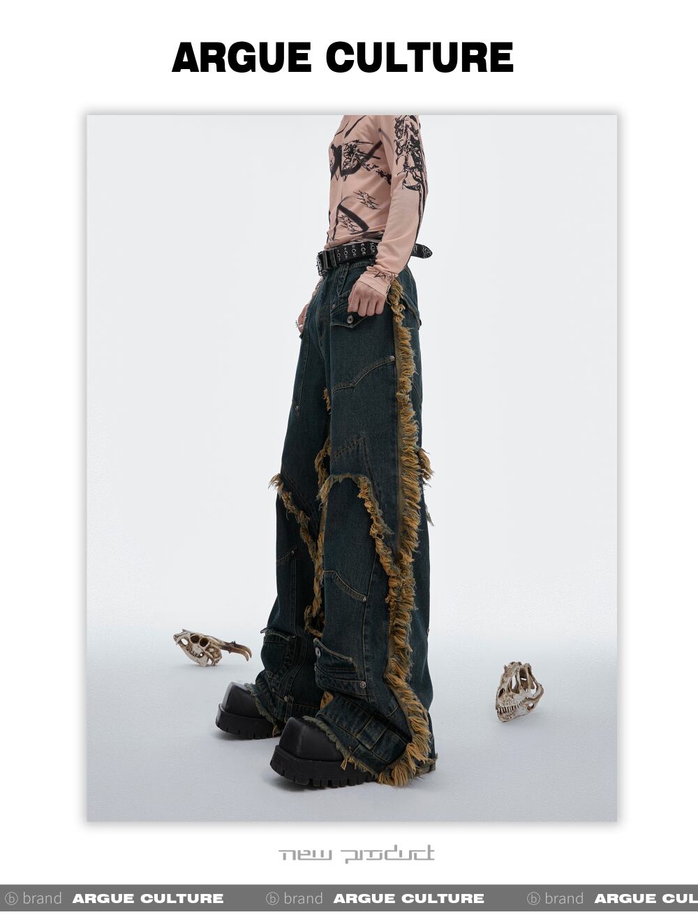 Argue Culture カーゴデニムパンツジーンズウォッシュドフリンジ