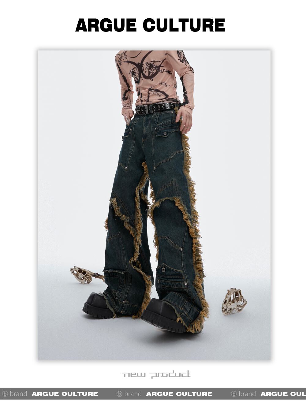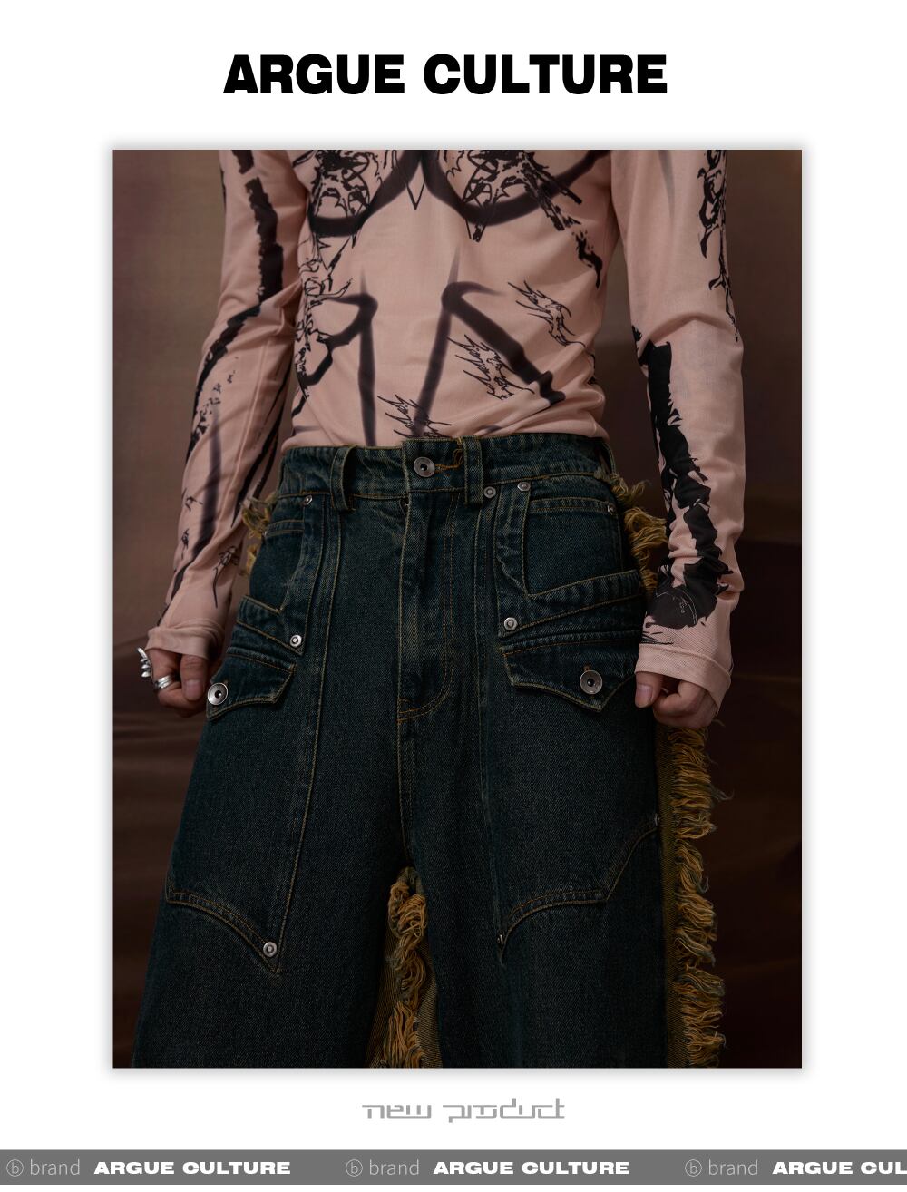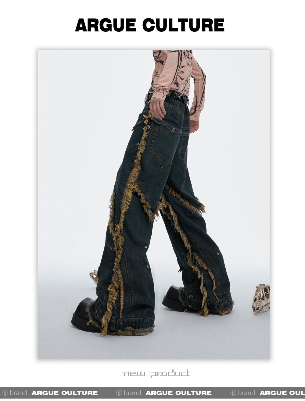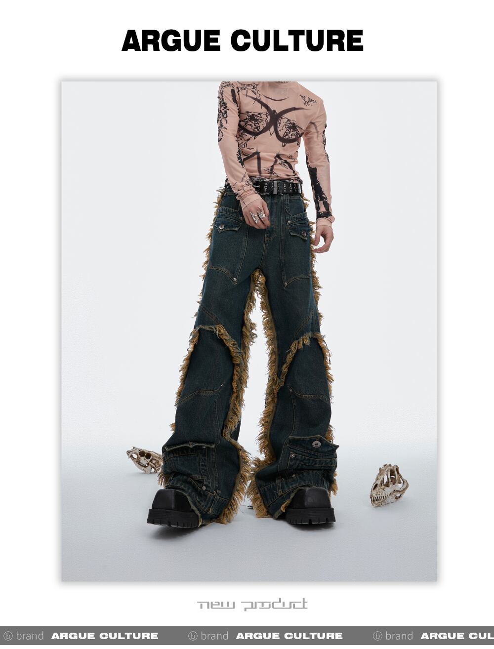 Argue Culture カーゴデニムパンツジーンズウォッシュドフリンジ