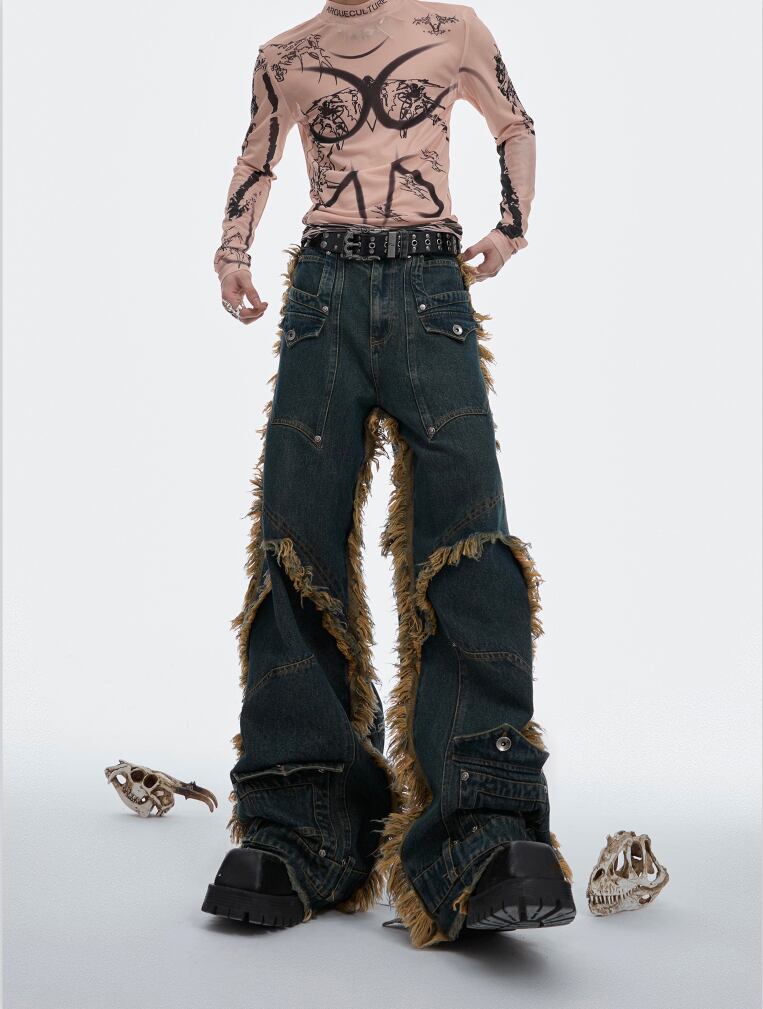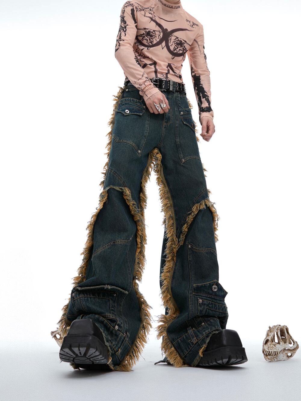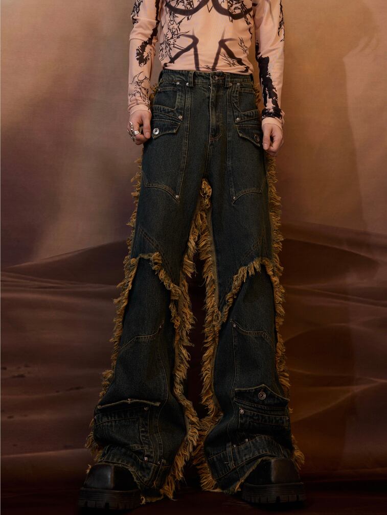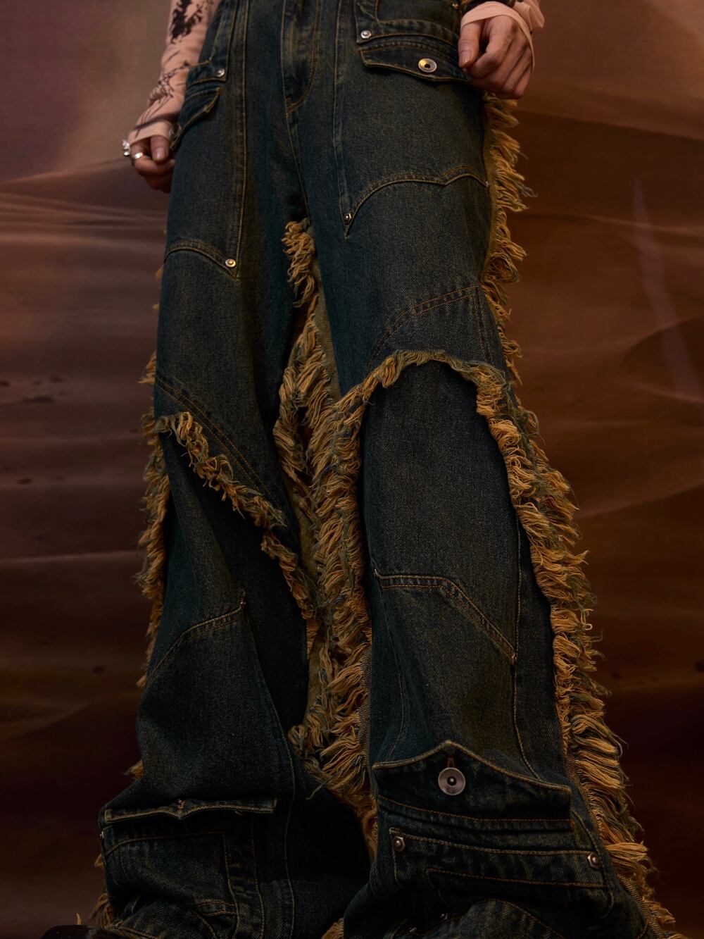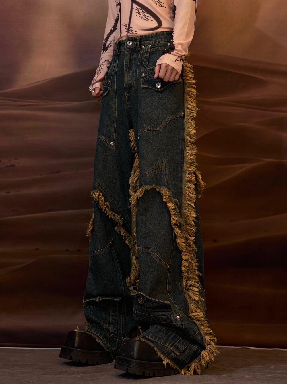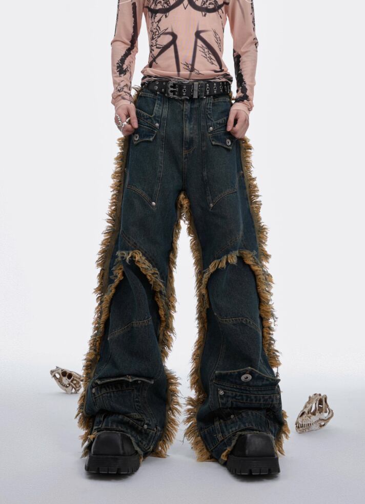 Argue Culture カーゴデニムパンツジーンズウォッシュドフリンジ