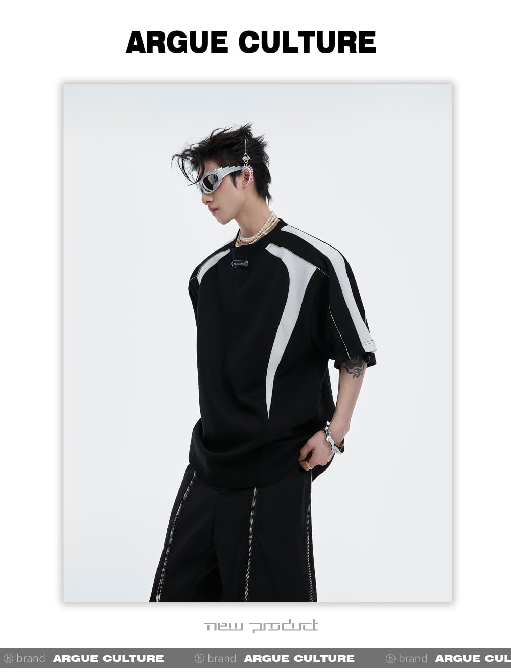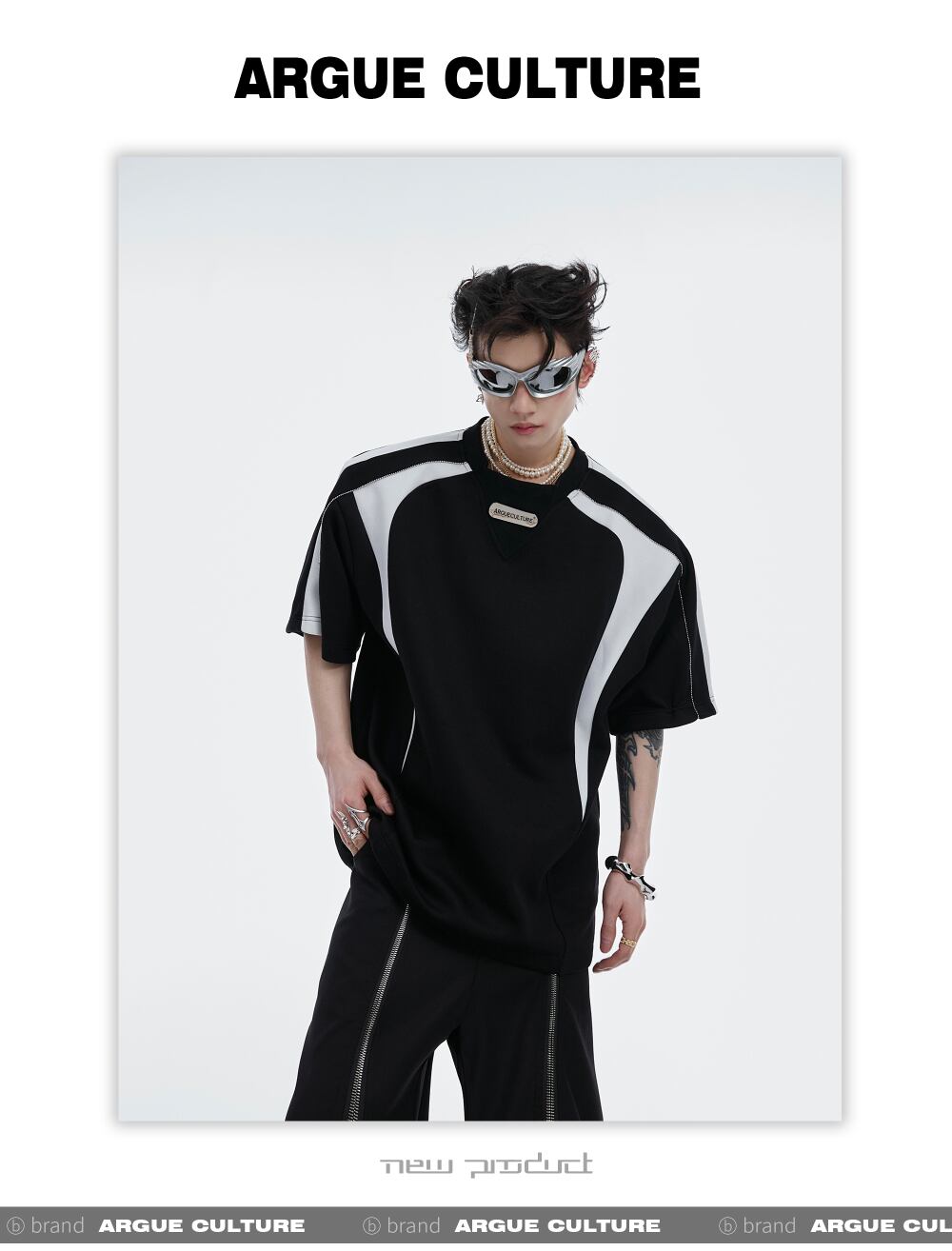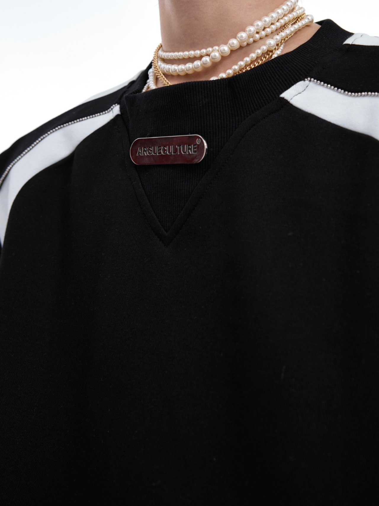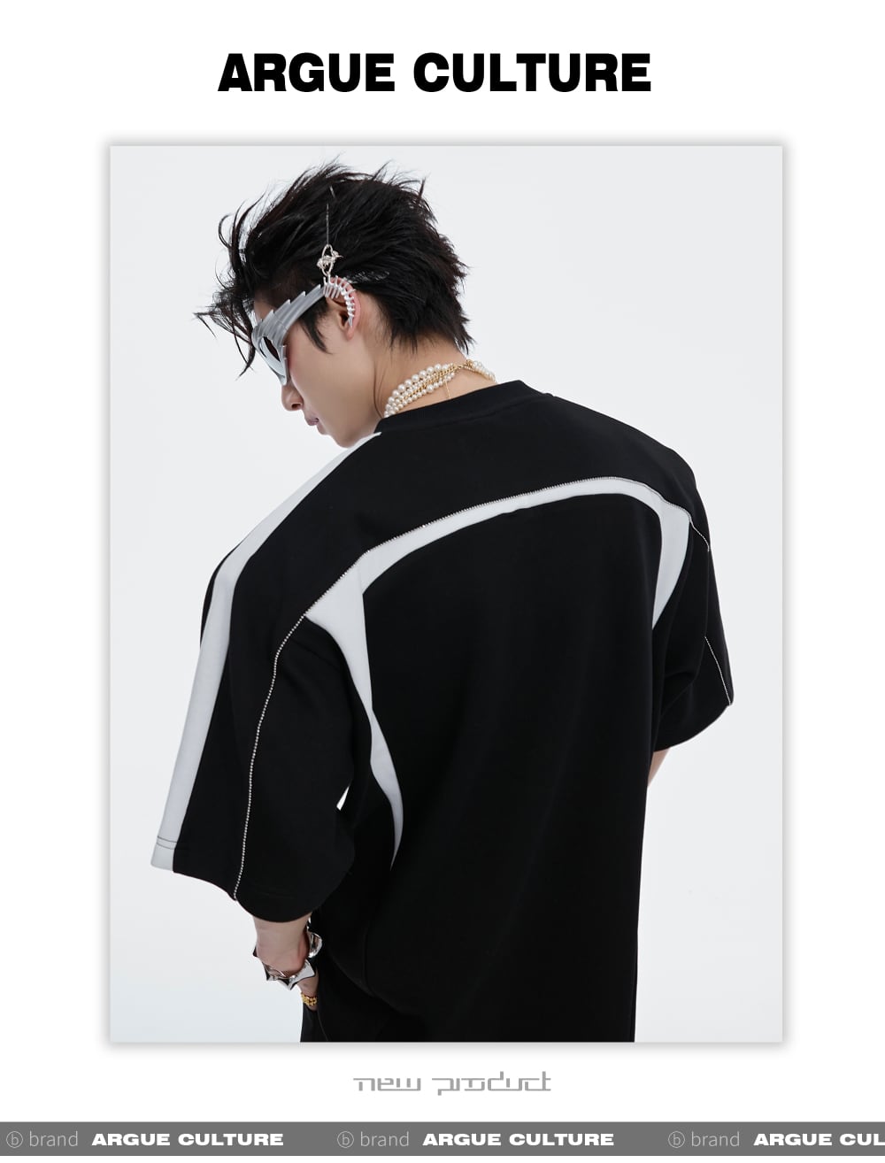 Argue Culture配色Tシャツ肩パッド付きゆったりメタルロゴ入り