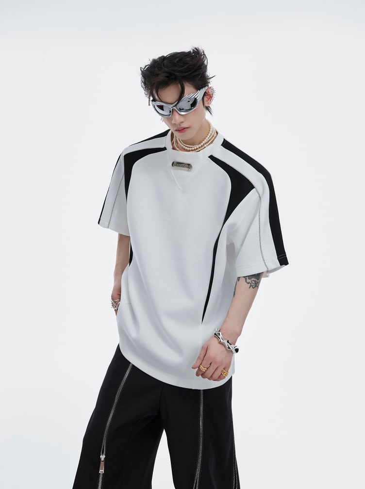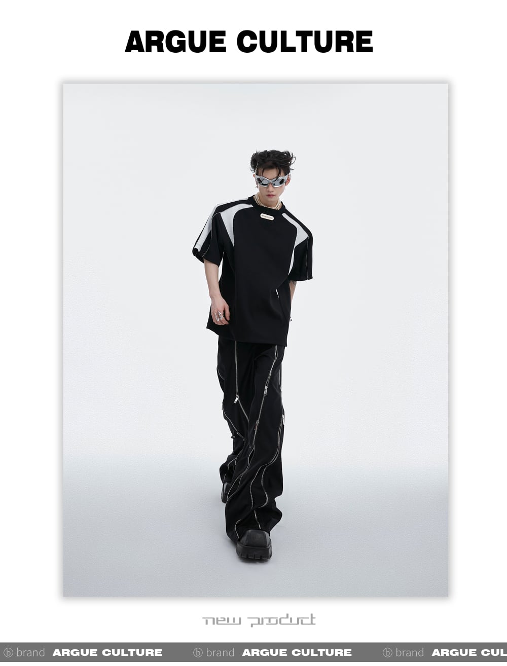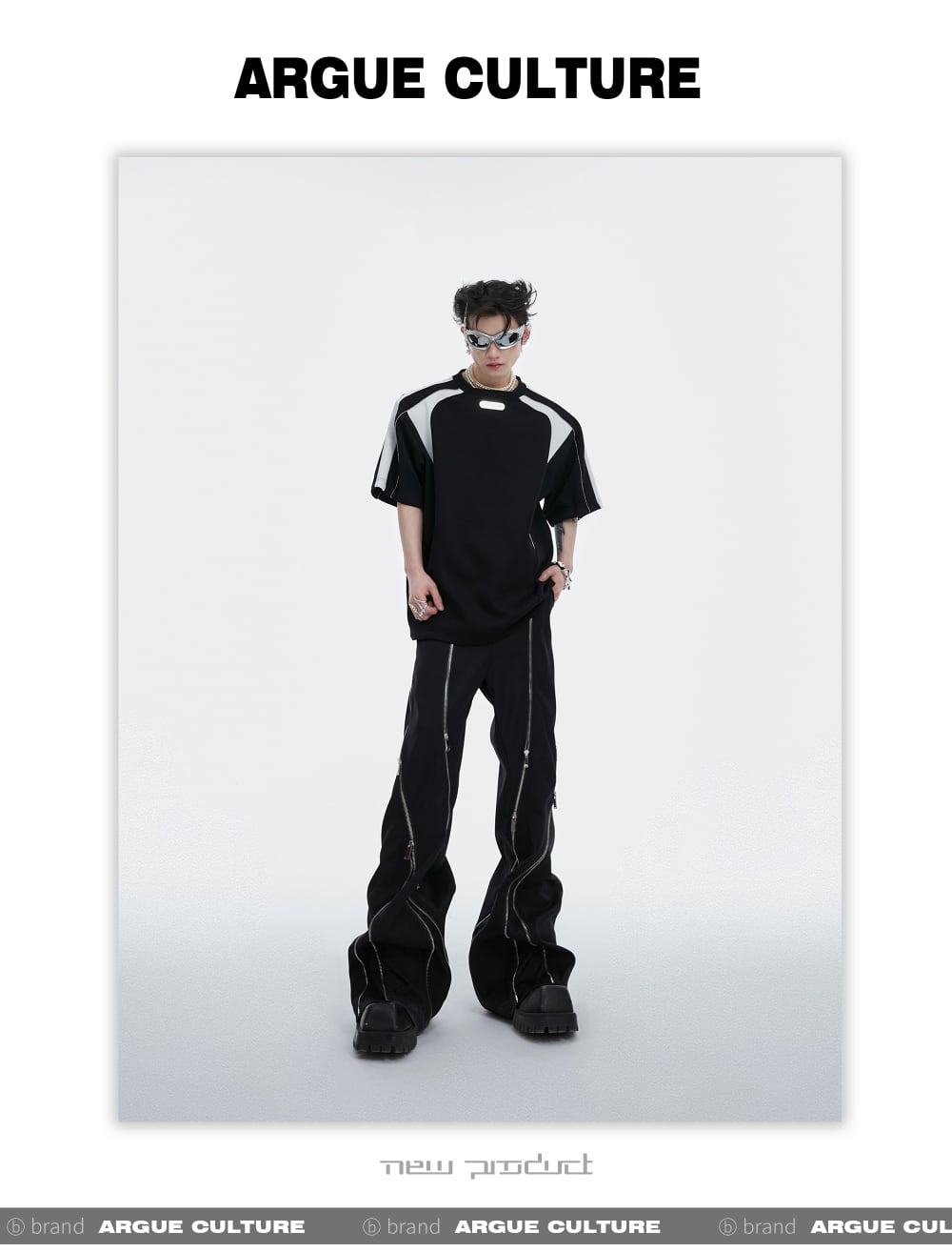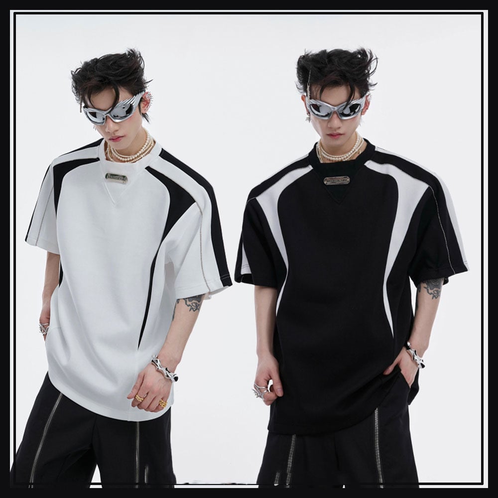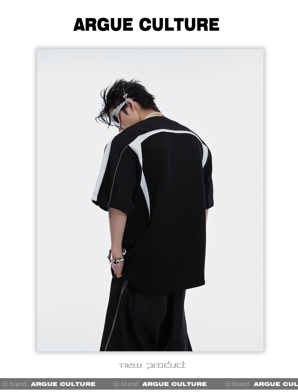 Argue Culture配色Tシャツ肩パッド付きゆったりメタルロゴ入り