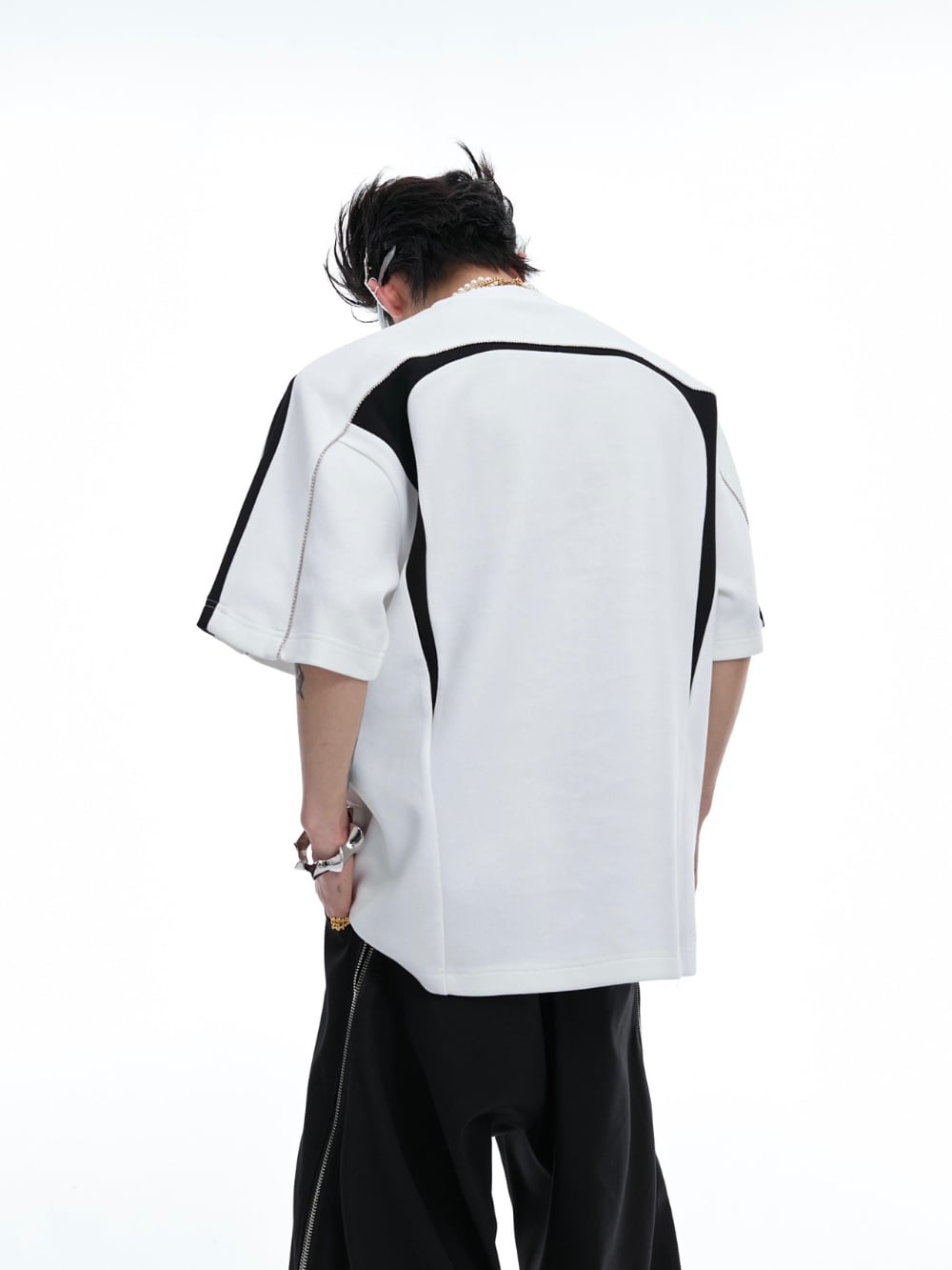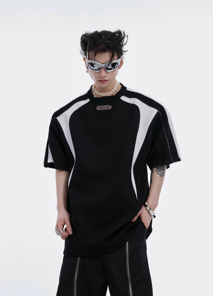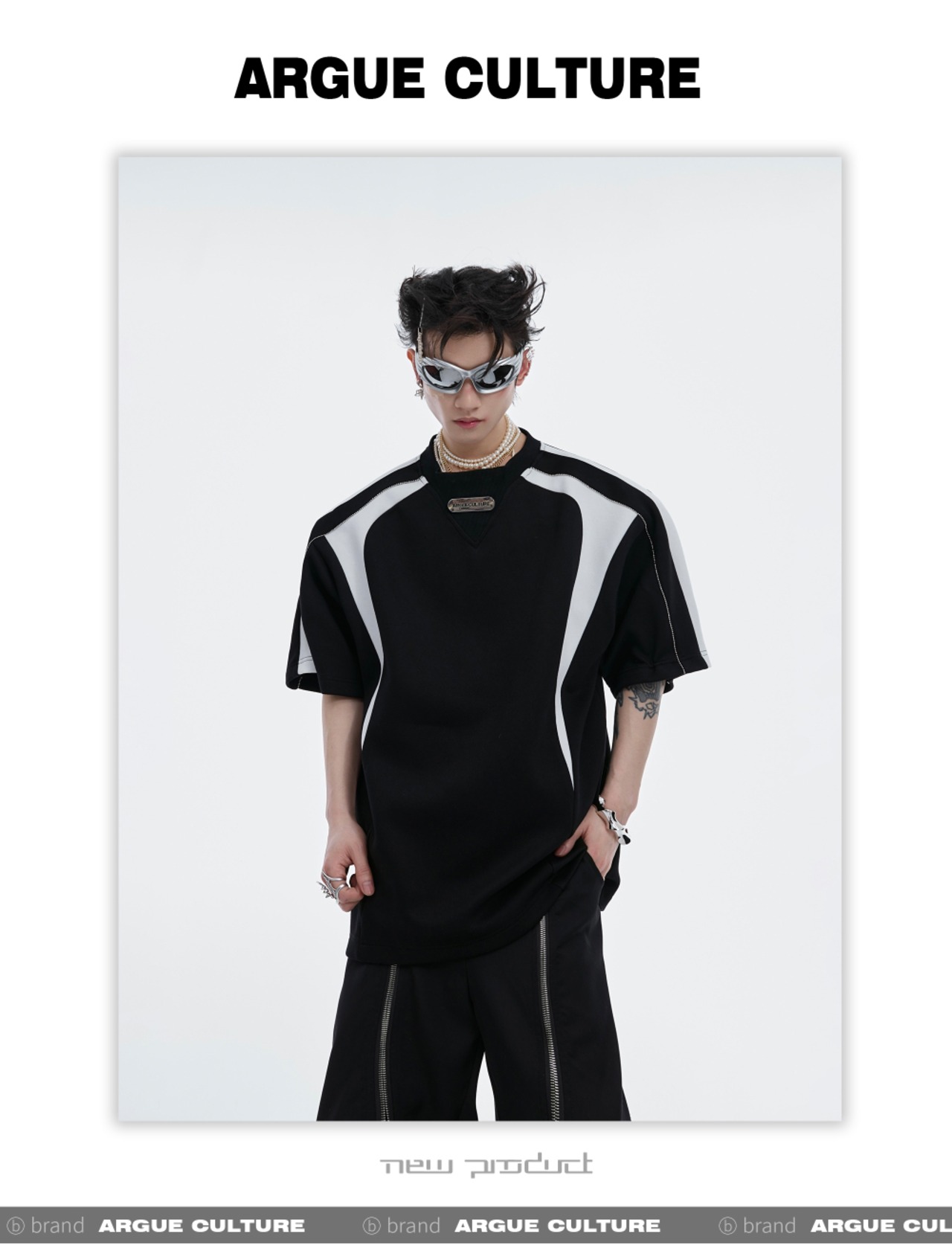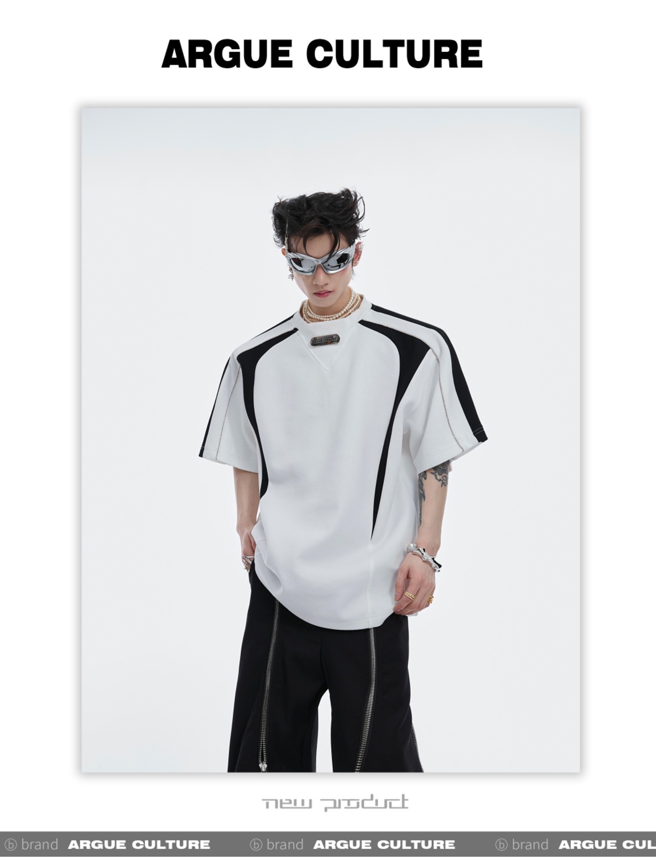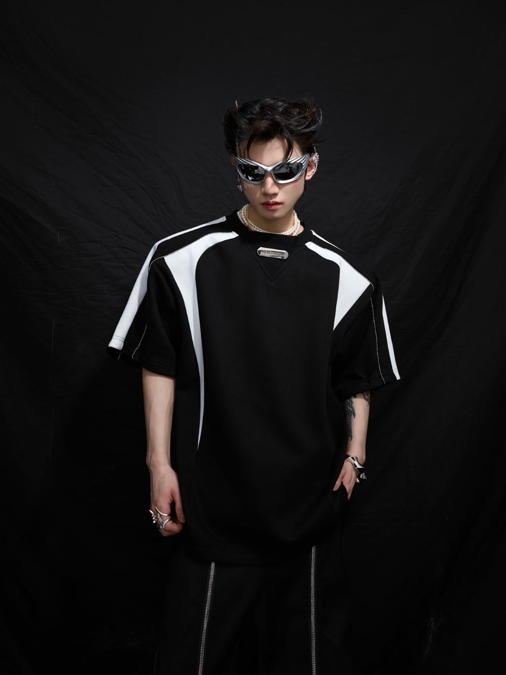 Argue Culture配色Tシャツ肩パッド付きゆったりメタルロゴ入り