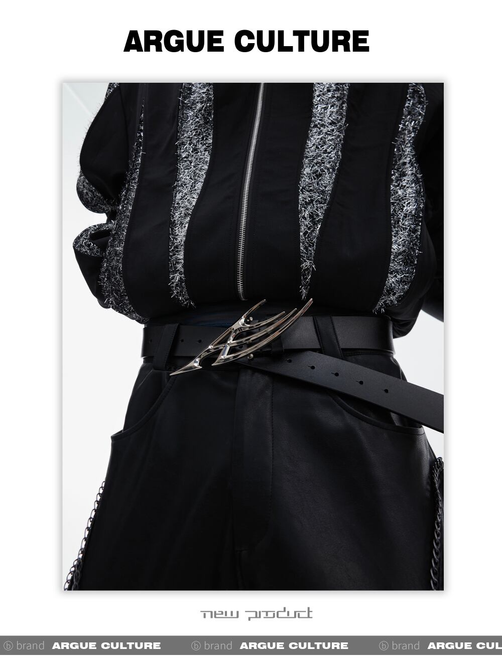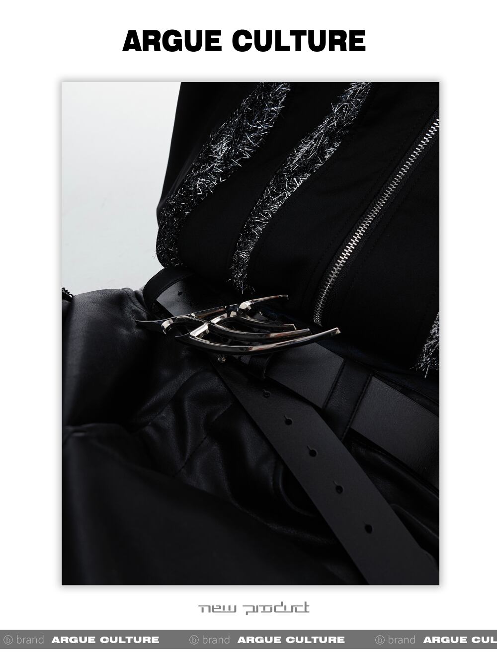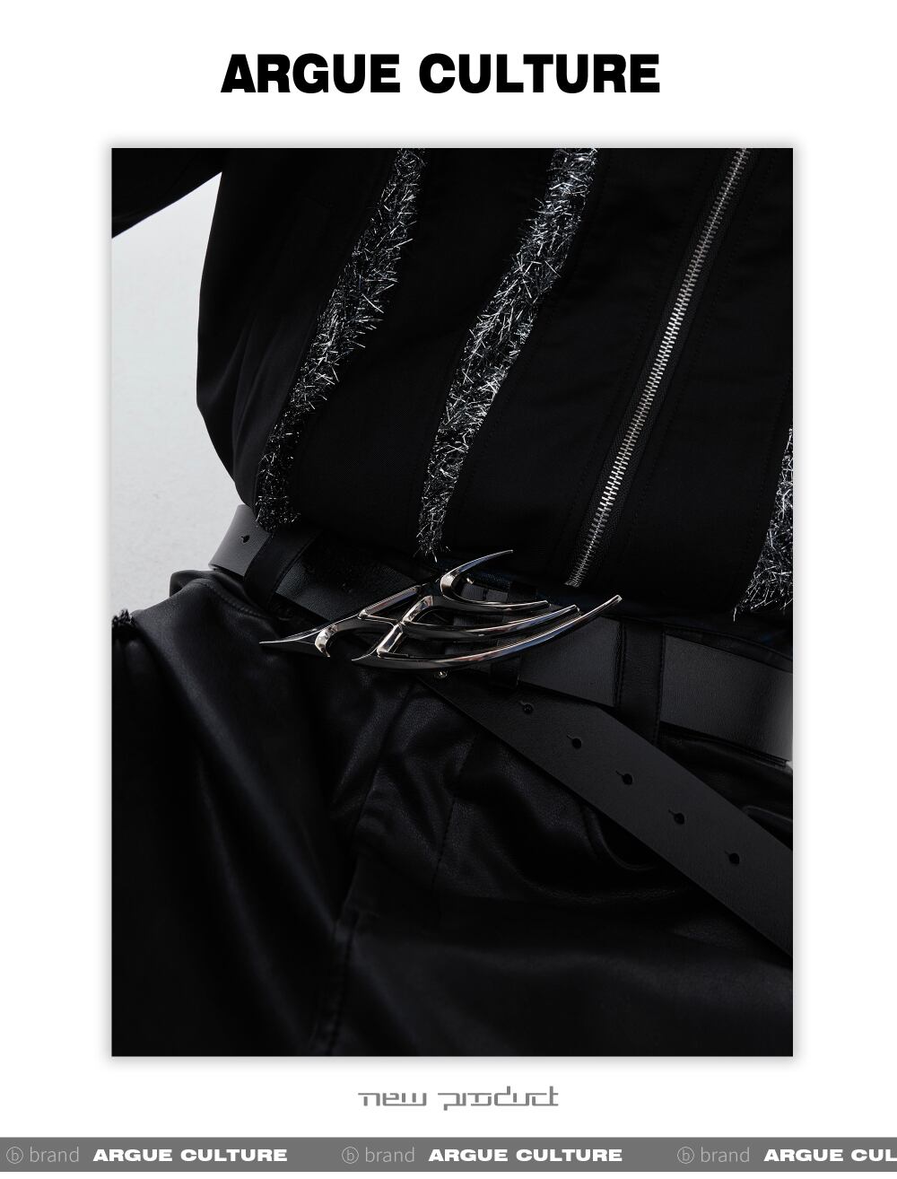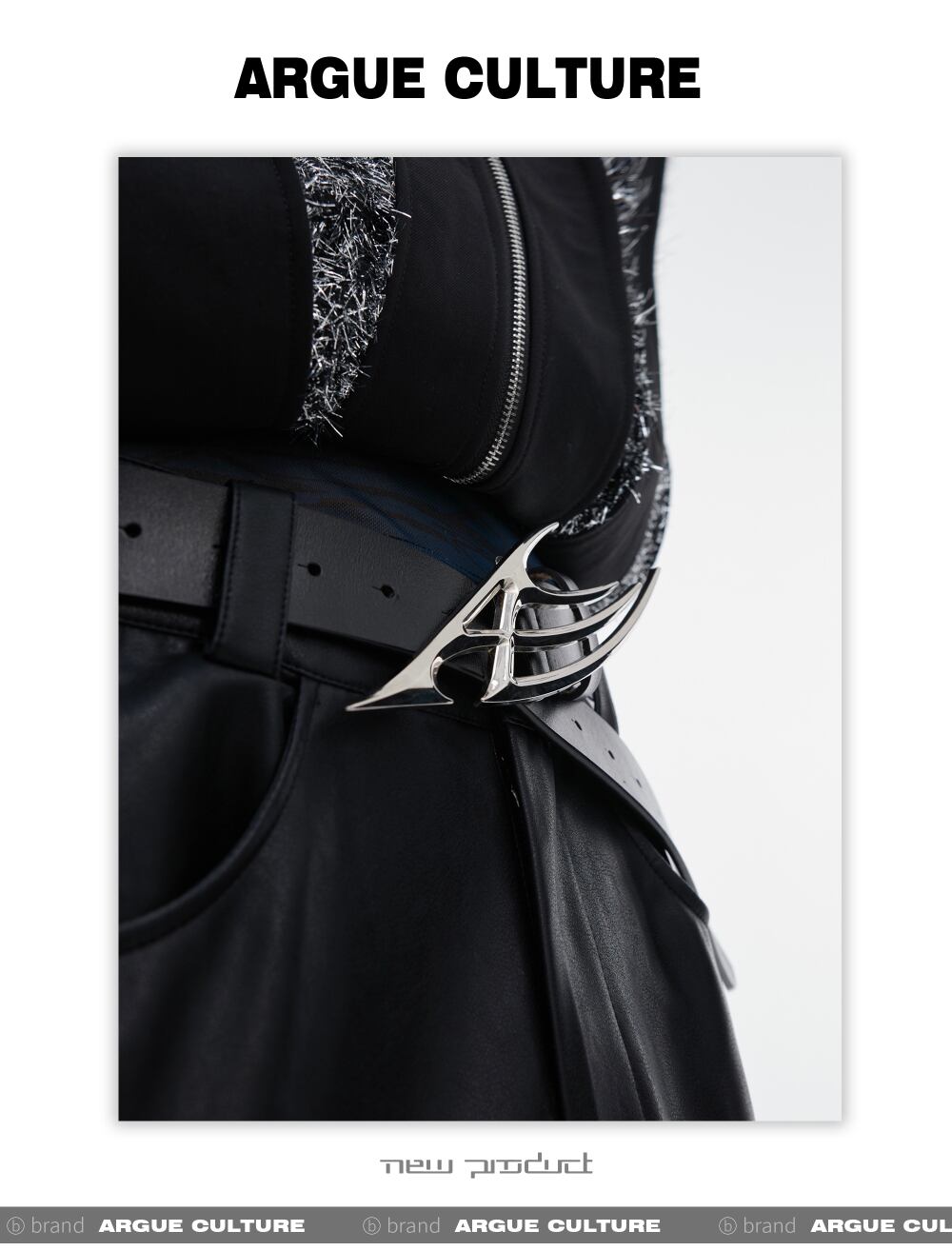 Argue Culture ベルトロゴ入りおしゃれPUレザー黒ユニセックス