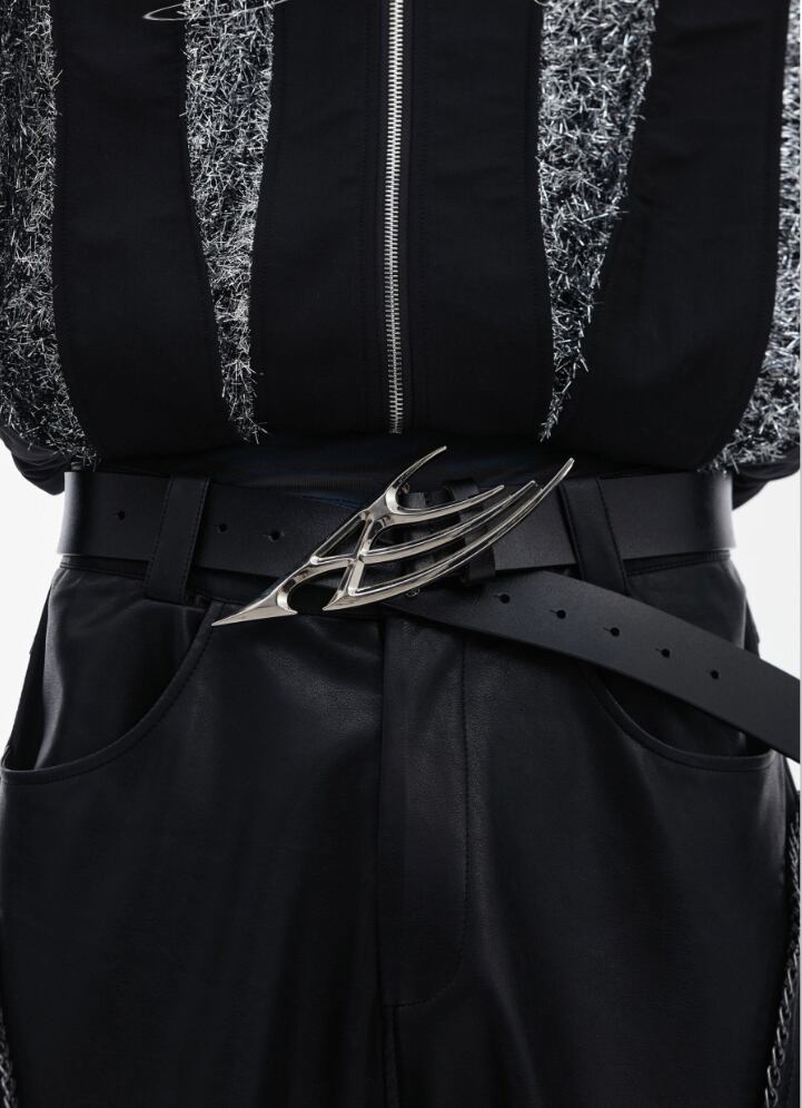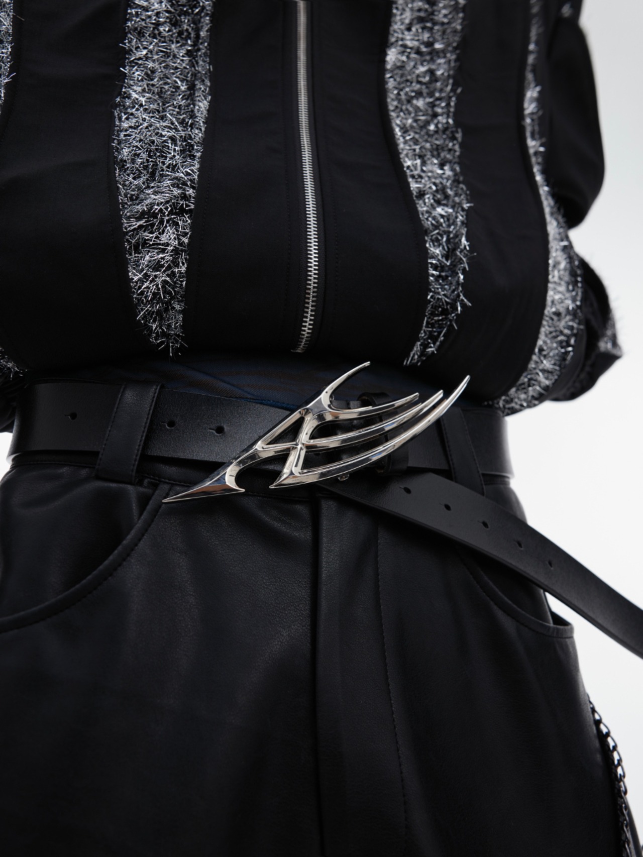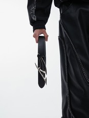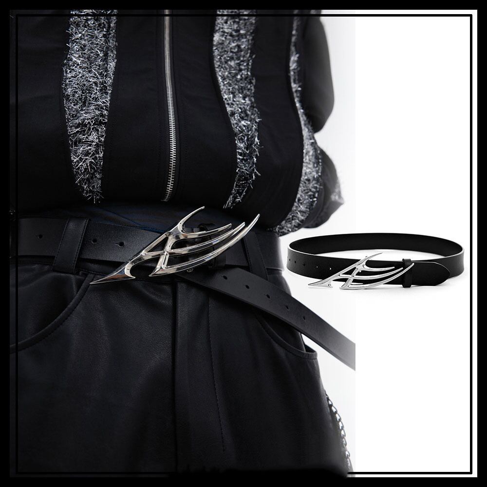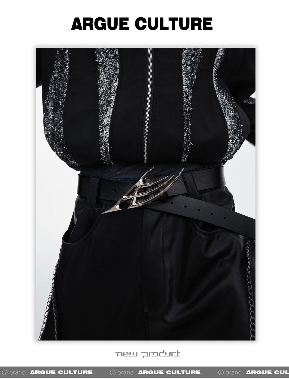 Argue Culture ベルトロゴ入りおしゃれPUレザー黒ユニセックス