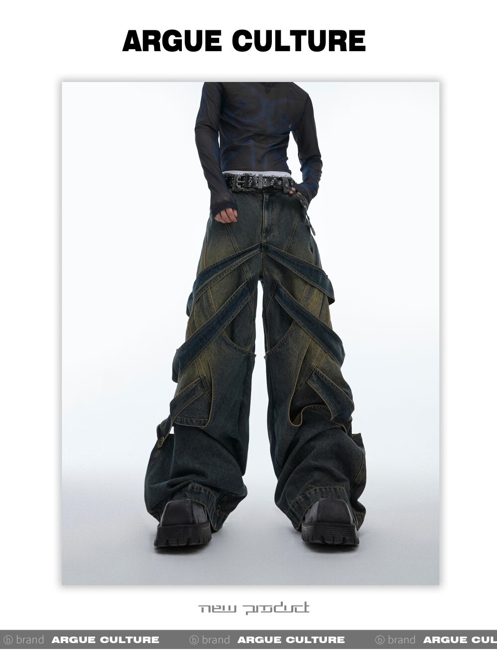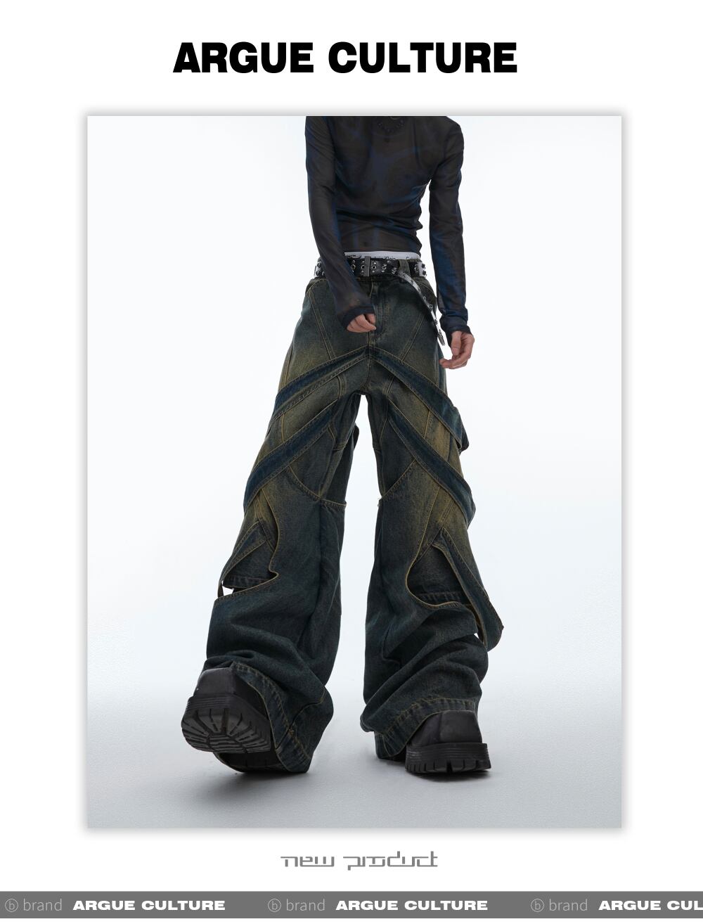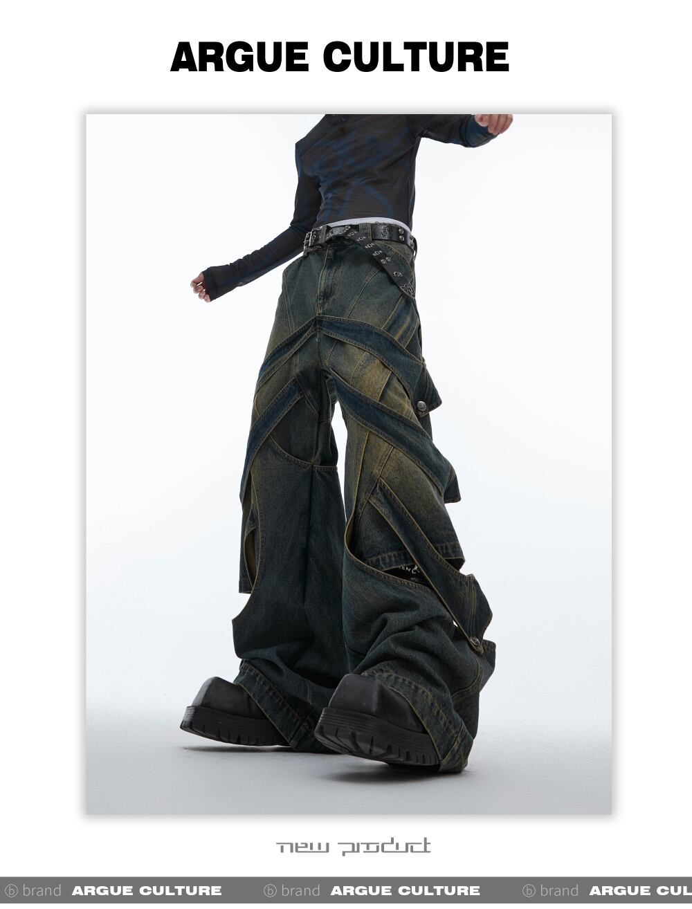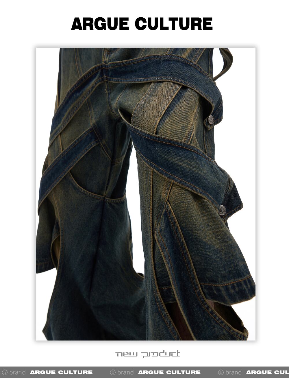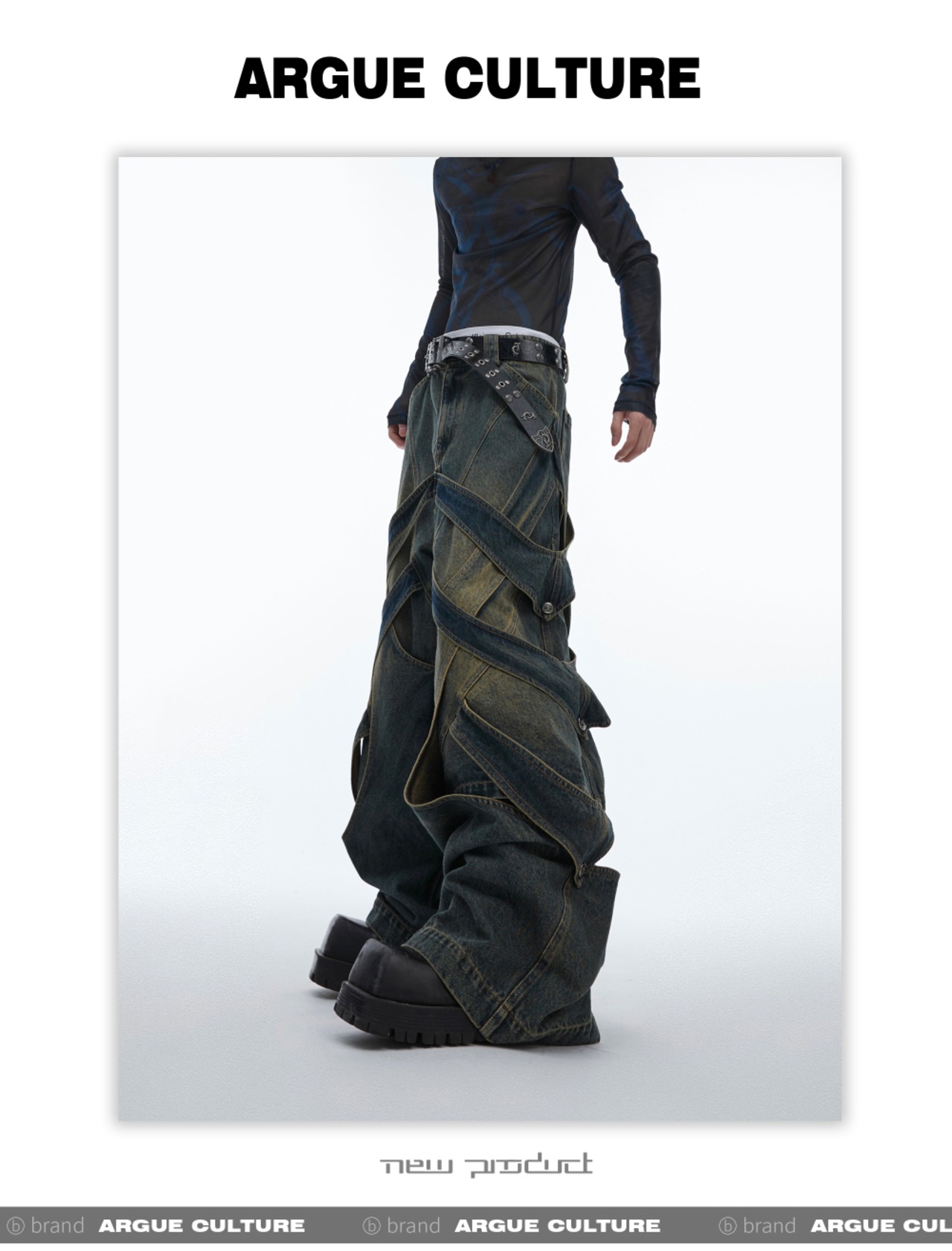 Argue Culture2色カーゴデニムパンツウォッシュドレイヤード切替