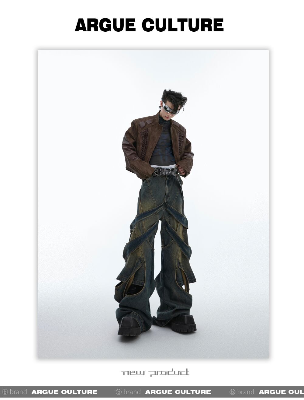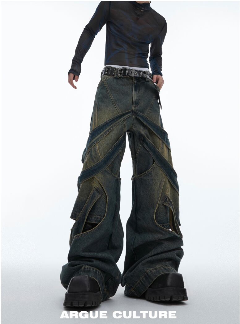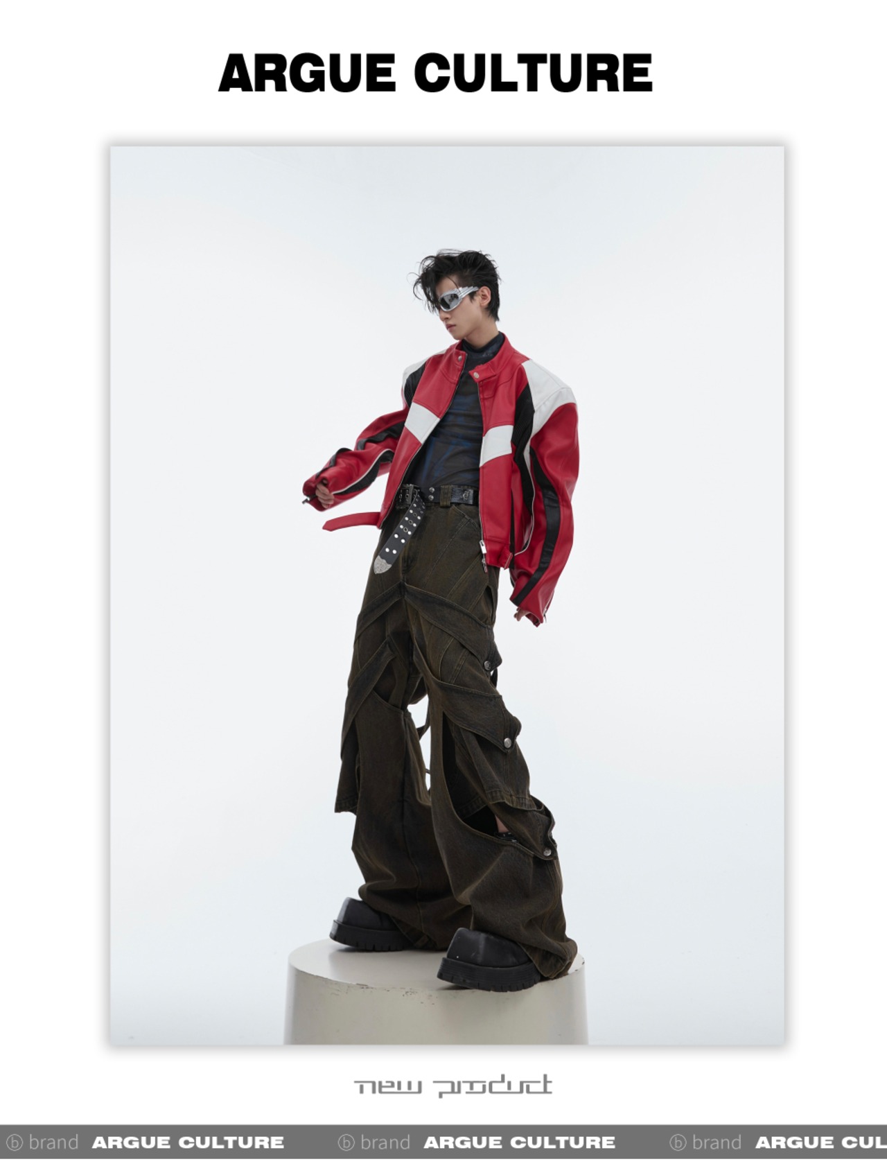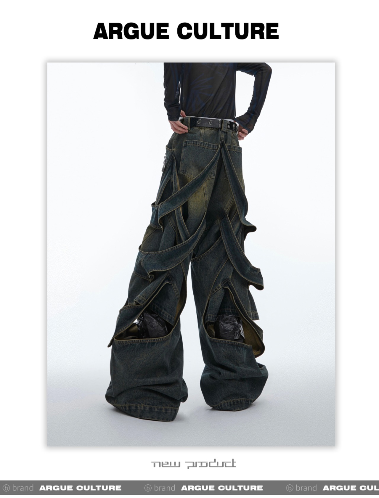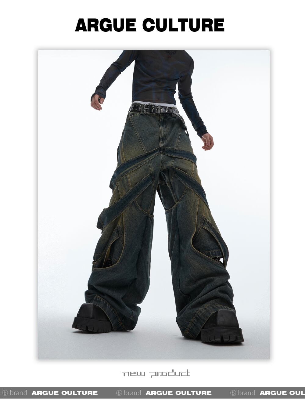 Argue Culture2色カーゴデニムパンツウォッシュドレイヤード切替