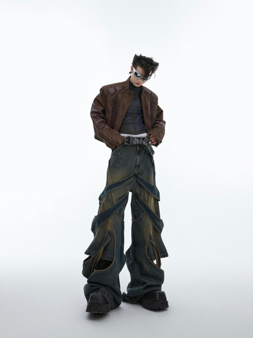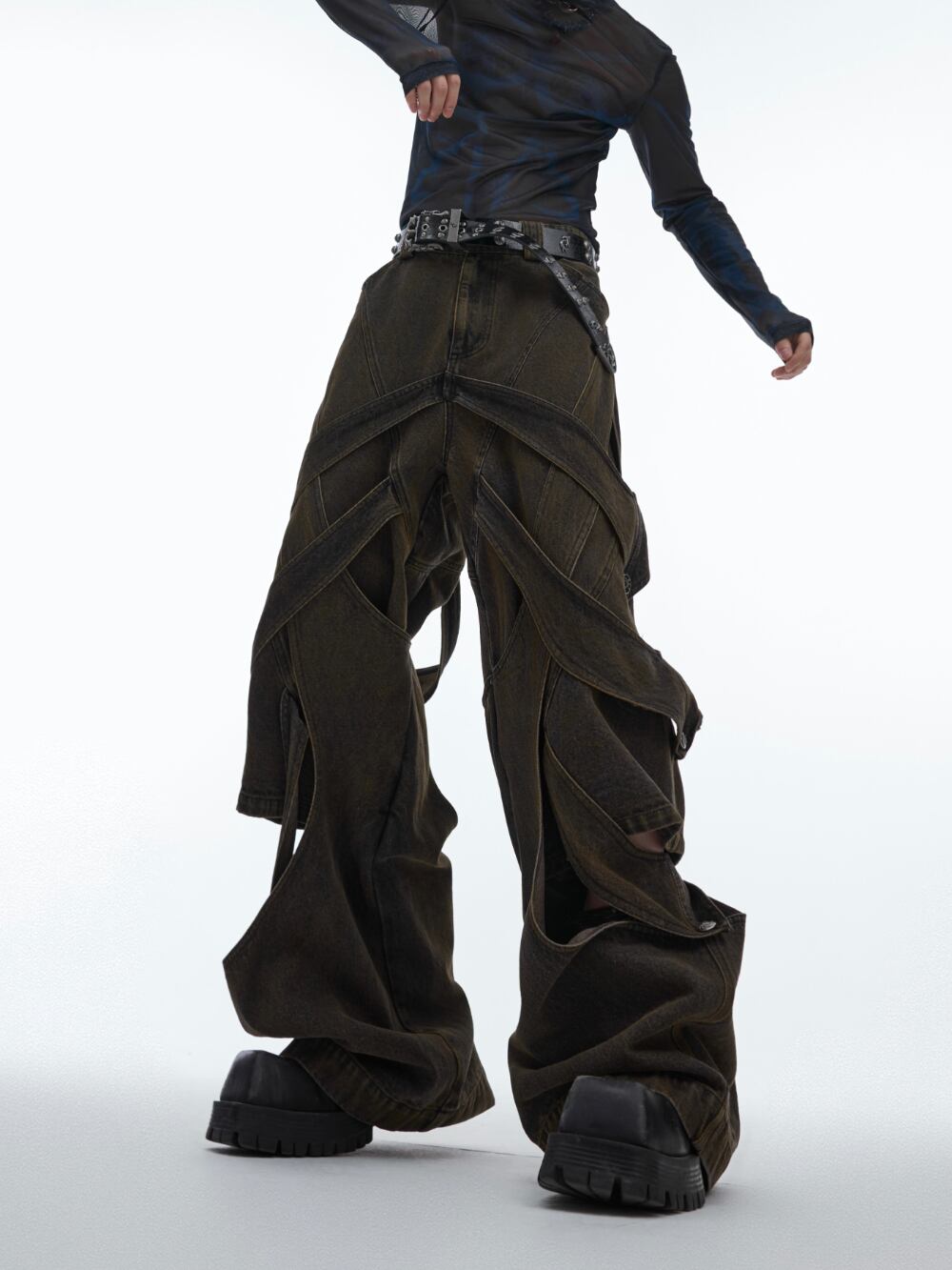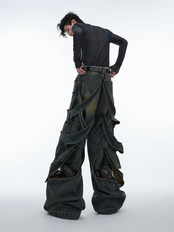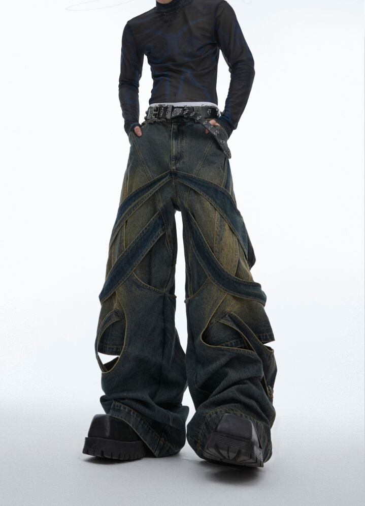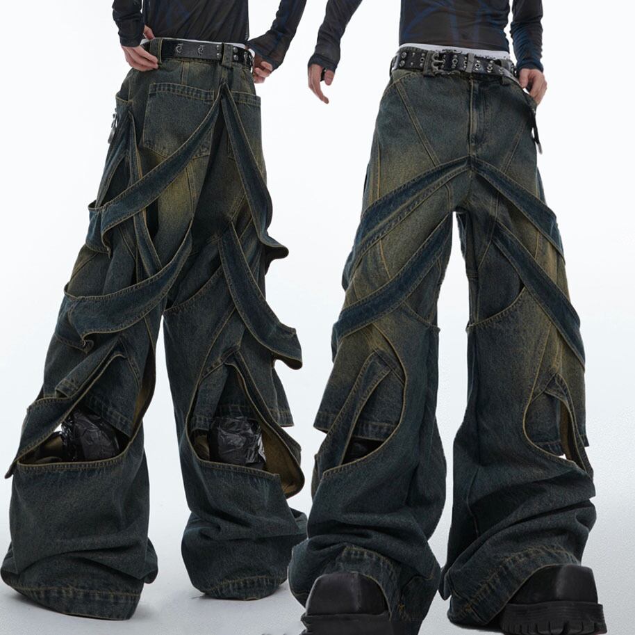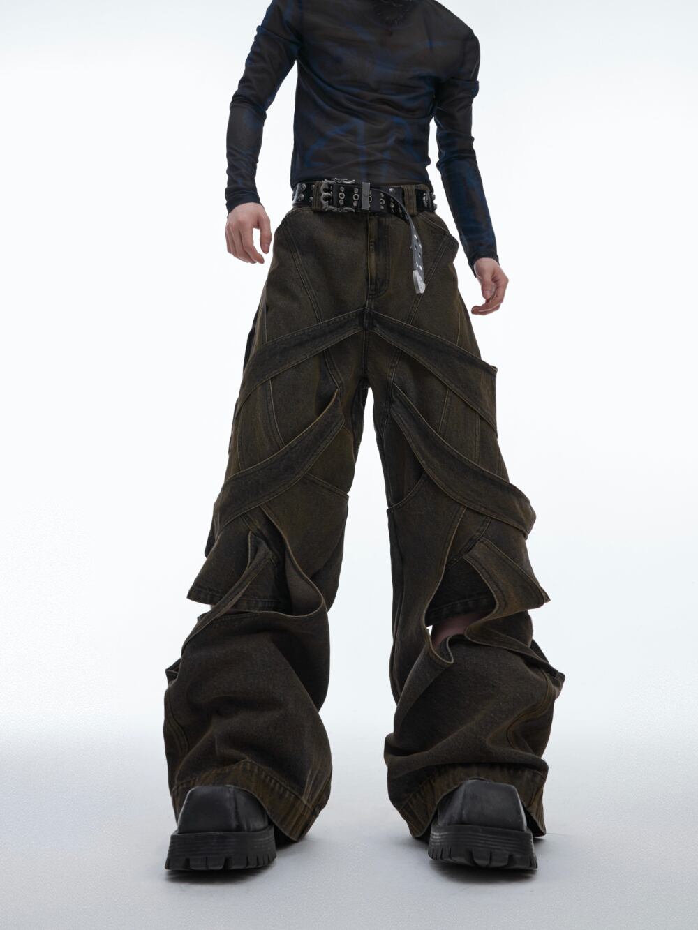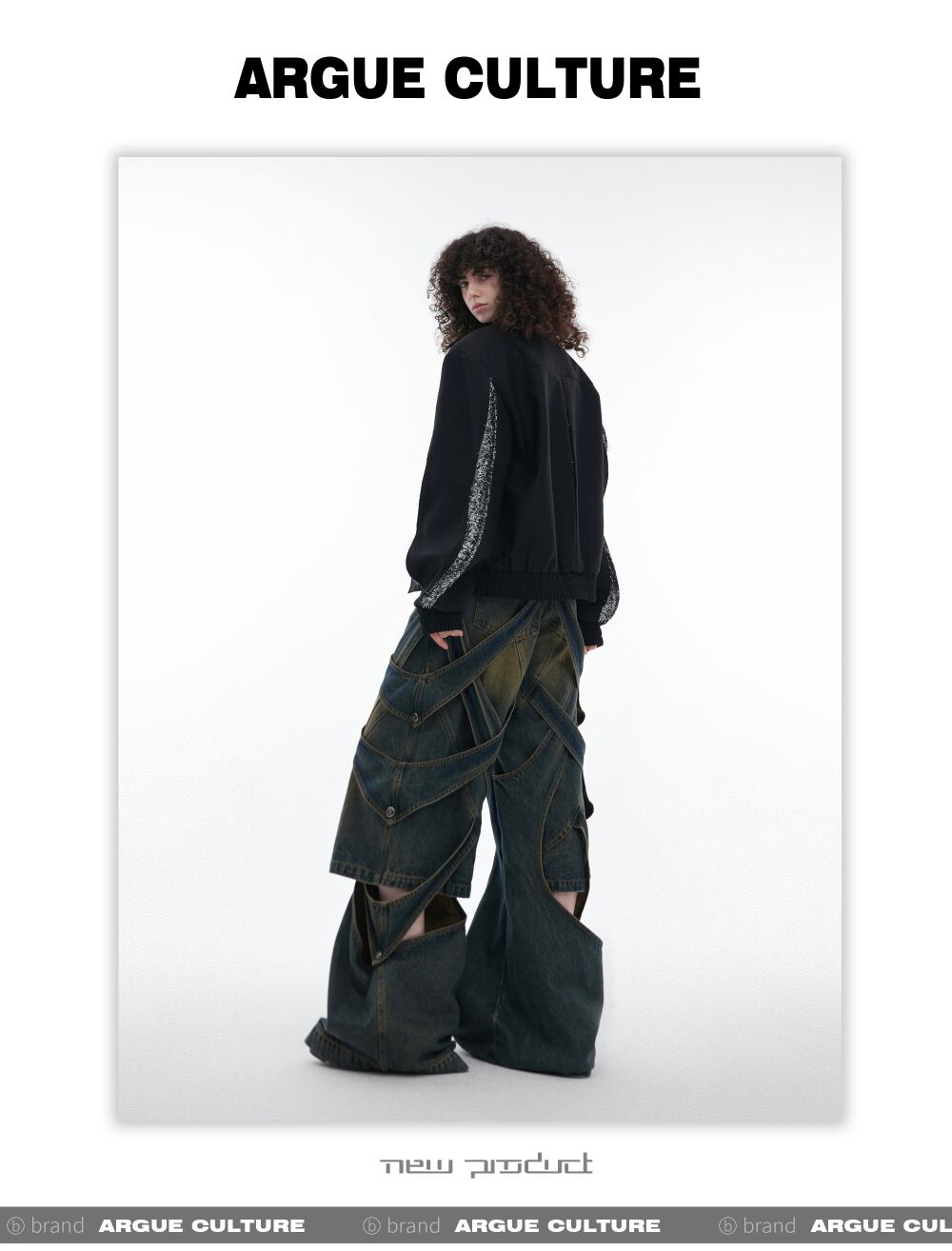 Argue Culture2色カーゴデニムパンツウォッシュドレイヤード切替